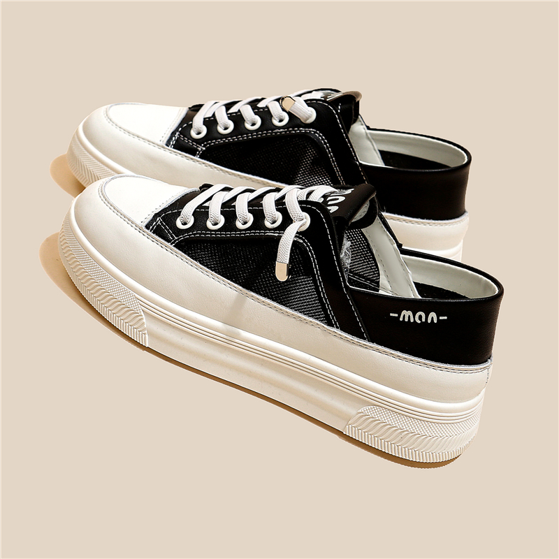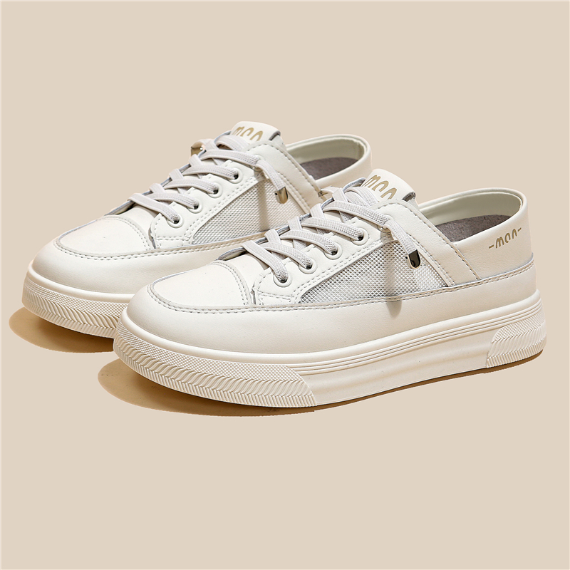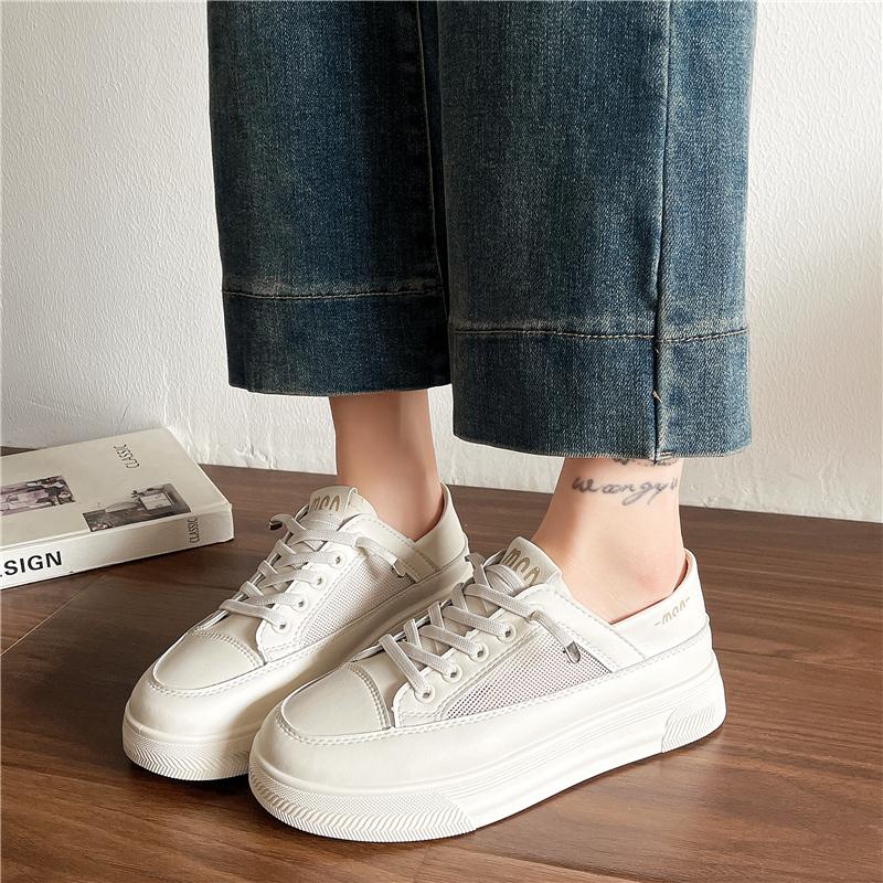 小白鞋女网面透气百搭平厚底2025夏季薄新款爆懒人一脚蹬休闲板鞋
