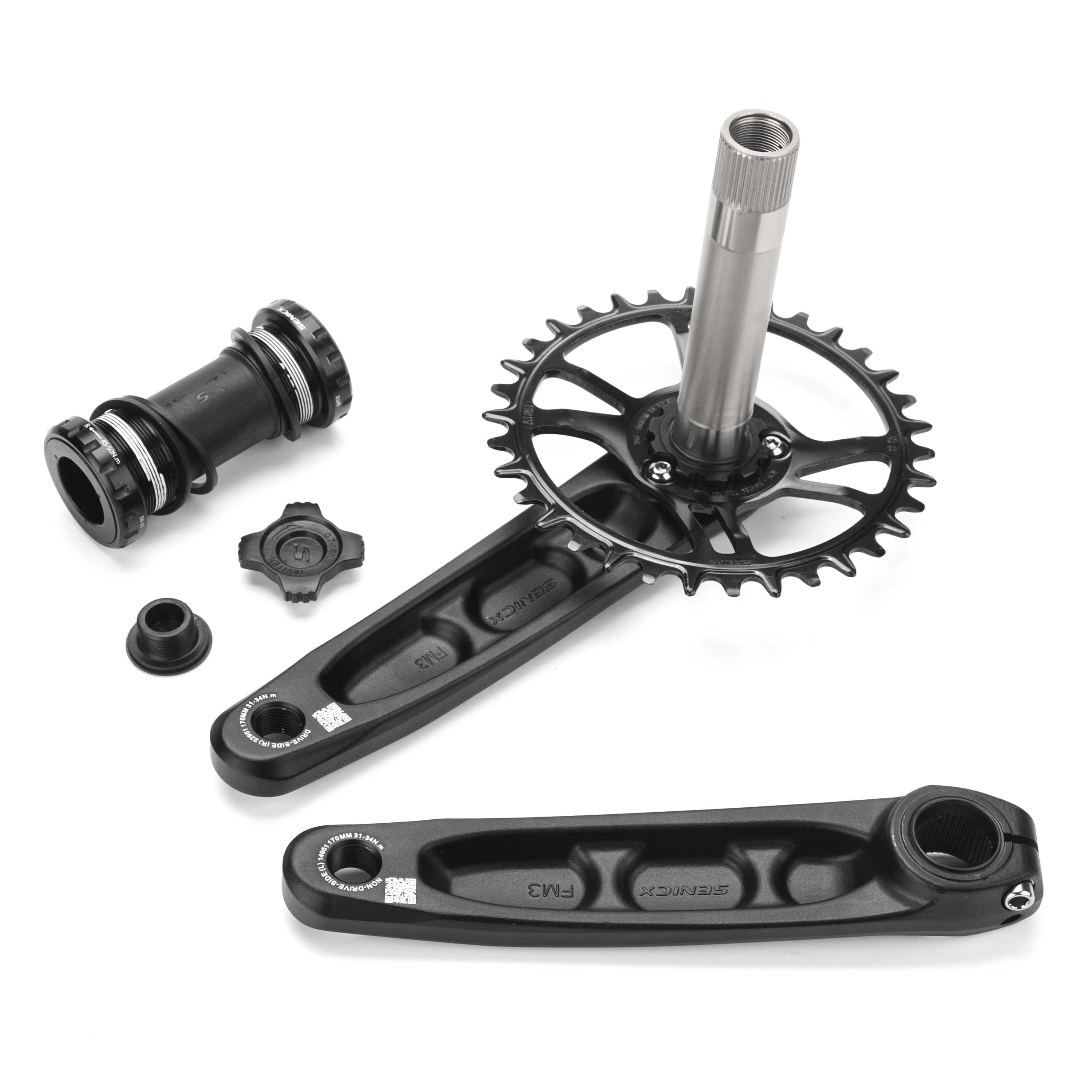 SENICX驭勇 FM3山地车自行车牙盘超轻曲柄24mm轴心中轴钢