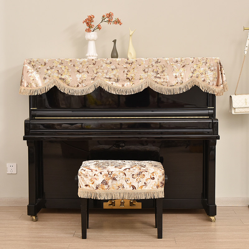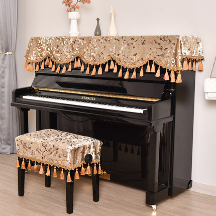 欧式古典钢琴防尘罩高档烫金色流苏钢琴罩半罩轻奢钢琴布防尘盖布