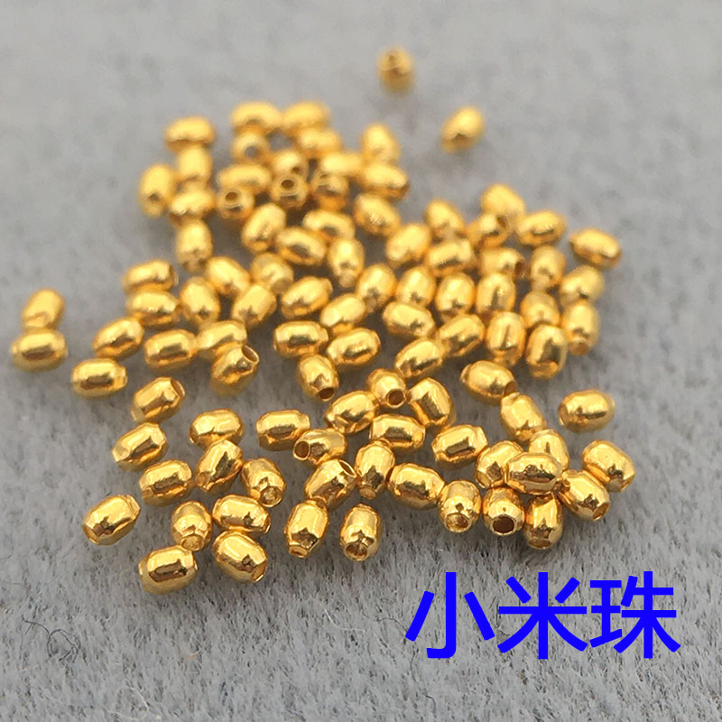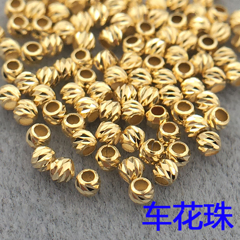 18K金镭射珠车花米珠光面空心间隔珠迷你小金珠子散珠diy手链配件