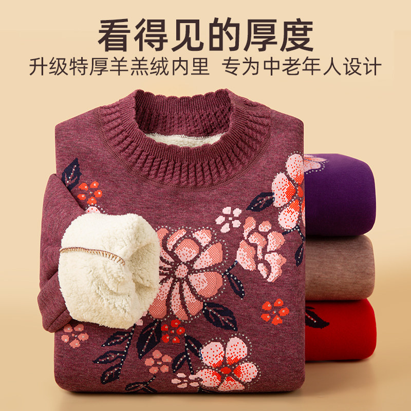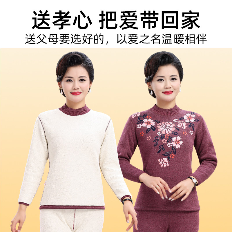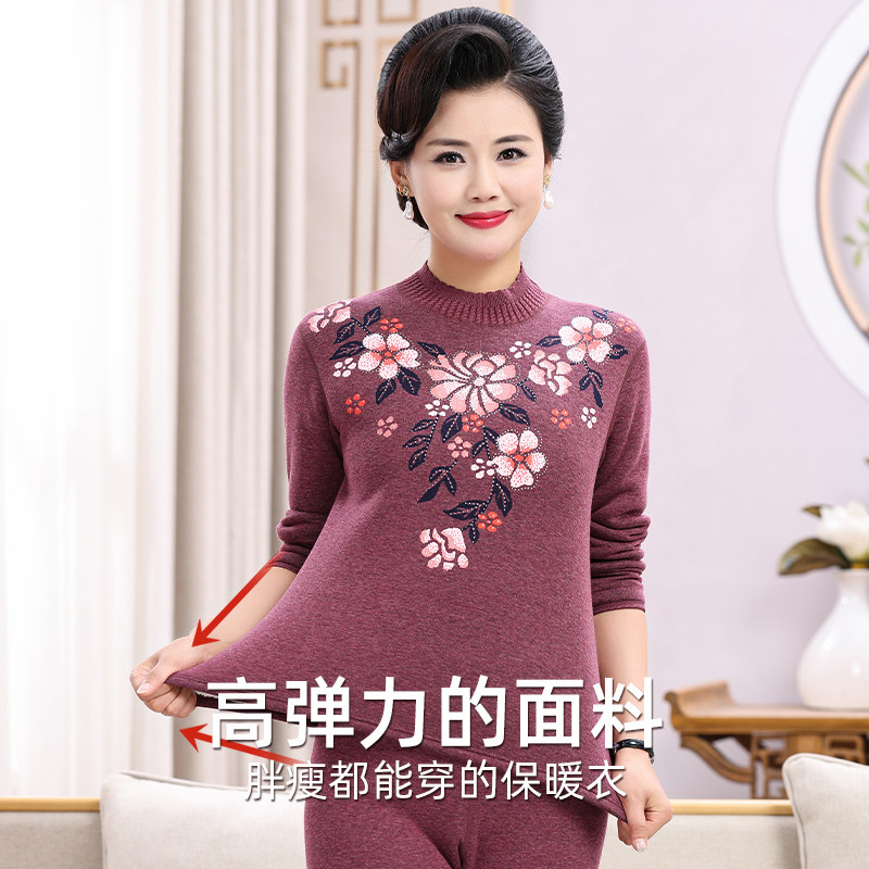 恒源祥保暖内衣套装女士加绒加厚中老年人妈妈印花保温秋衣秋裤冬