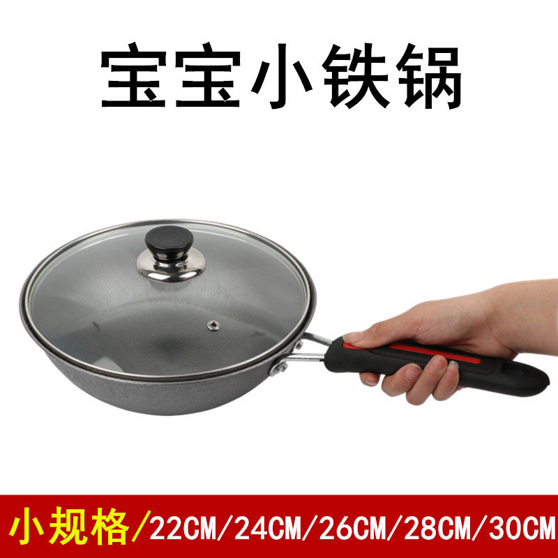 真铸铁小炒锅生铁双耳炖锅单柄铁锅铸铁锅无涂层炒菜锅宝宝小铁锅