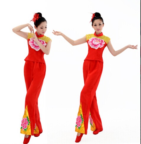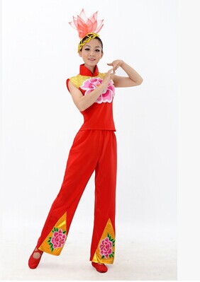 热卖新款无袖秧歌舞蹈演出服女装民族舞台表演服腰鼓舞扇子舞服装