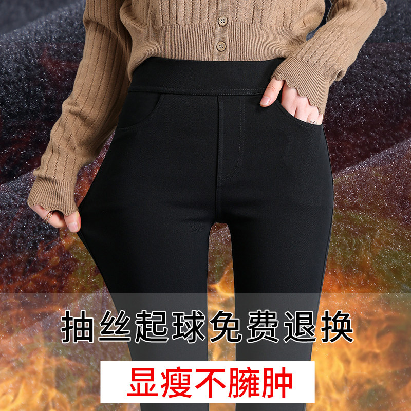 打底裤女外穿春秋款加绒小个子八九分高腰紧身黑色铅笔魔术小脚裤