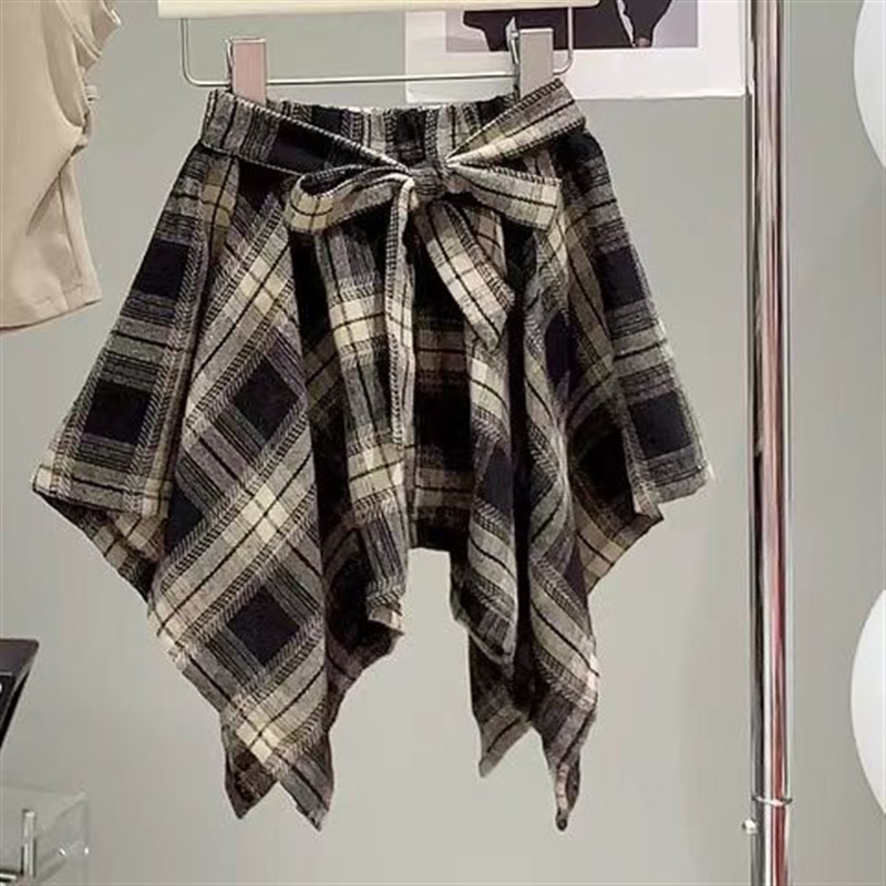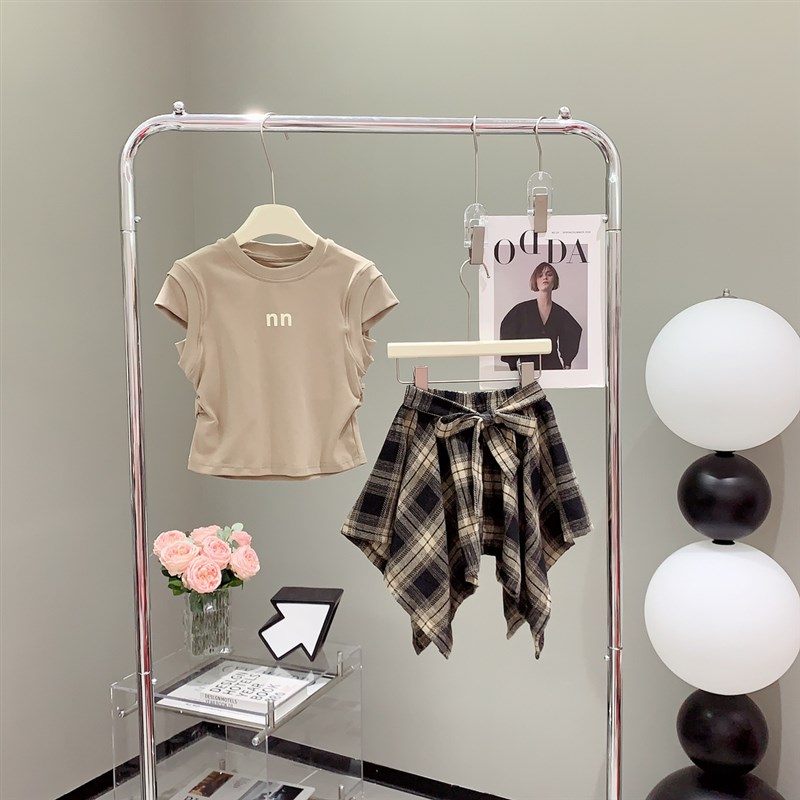 女童夏季套装裙不规则格子半身裙2024夏款女孩大童裙裤夏装两件套