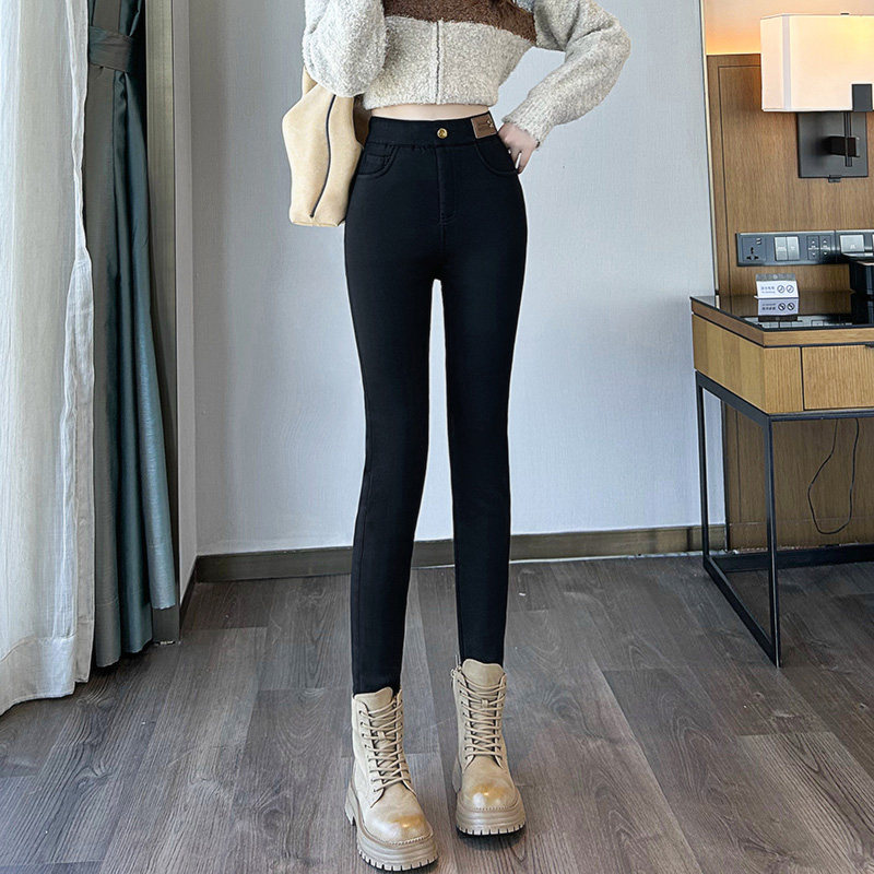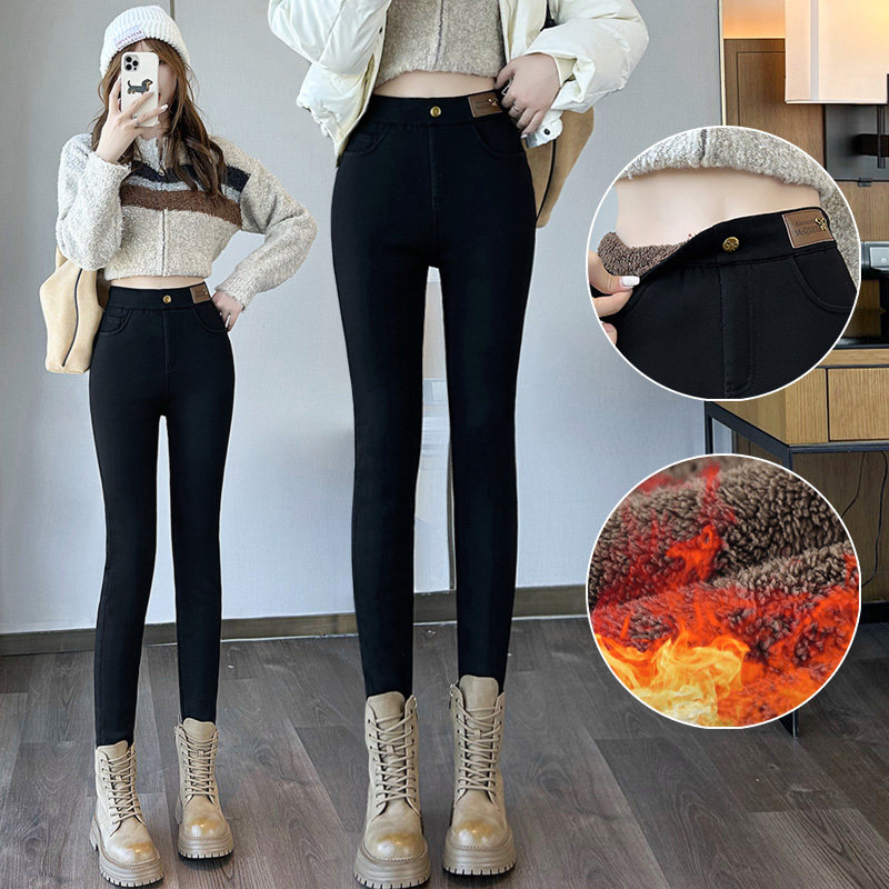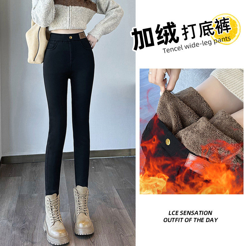 加厚羊羔绒打底裤黑色小脚裤棉裤