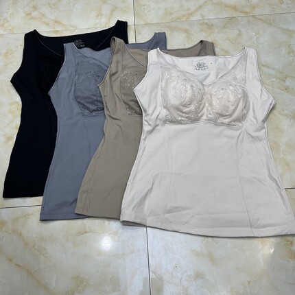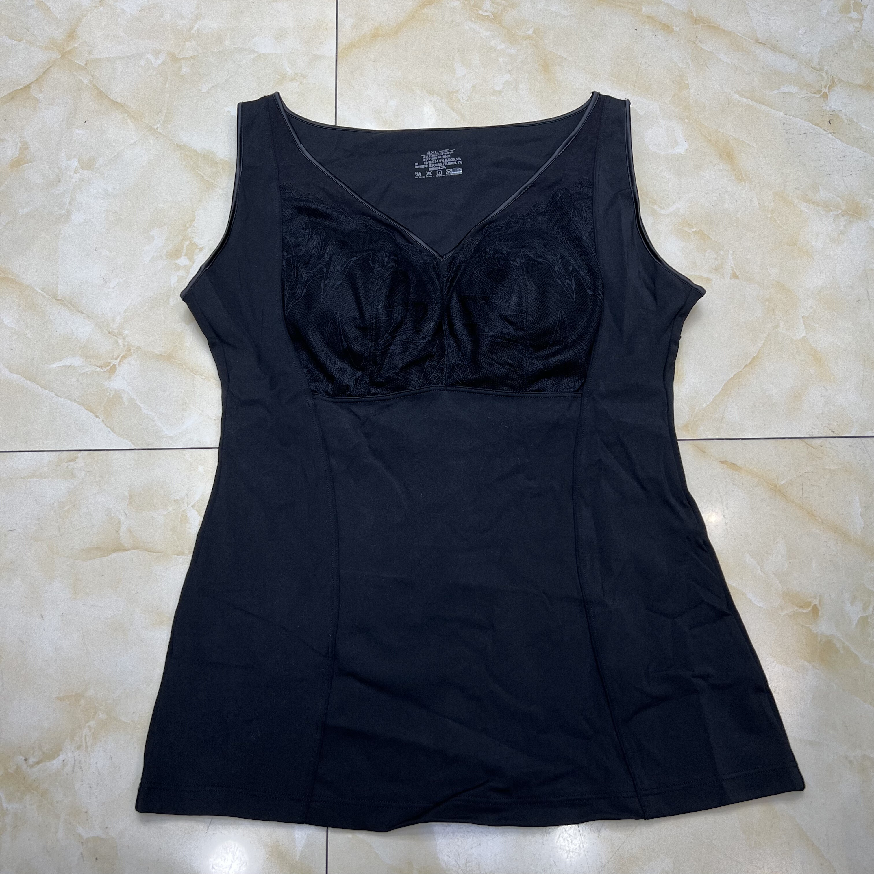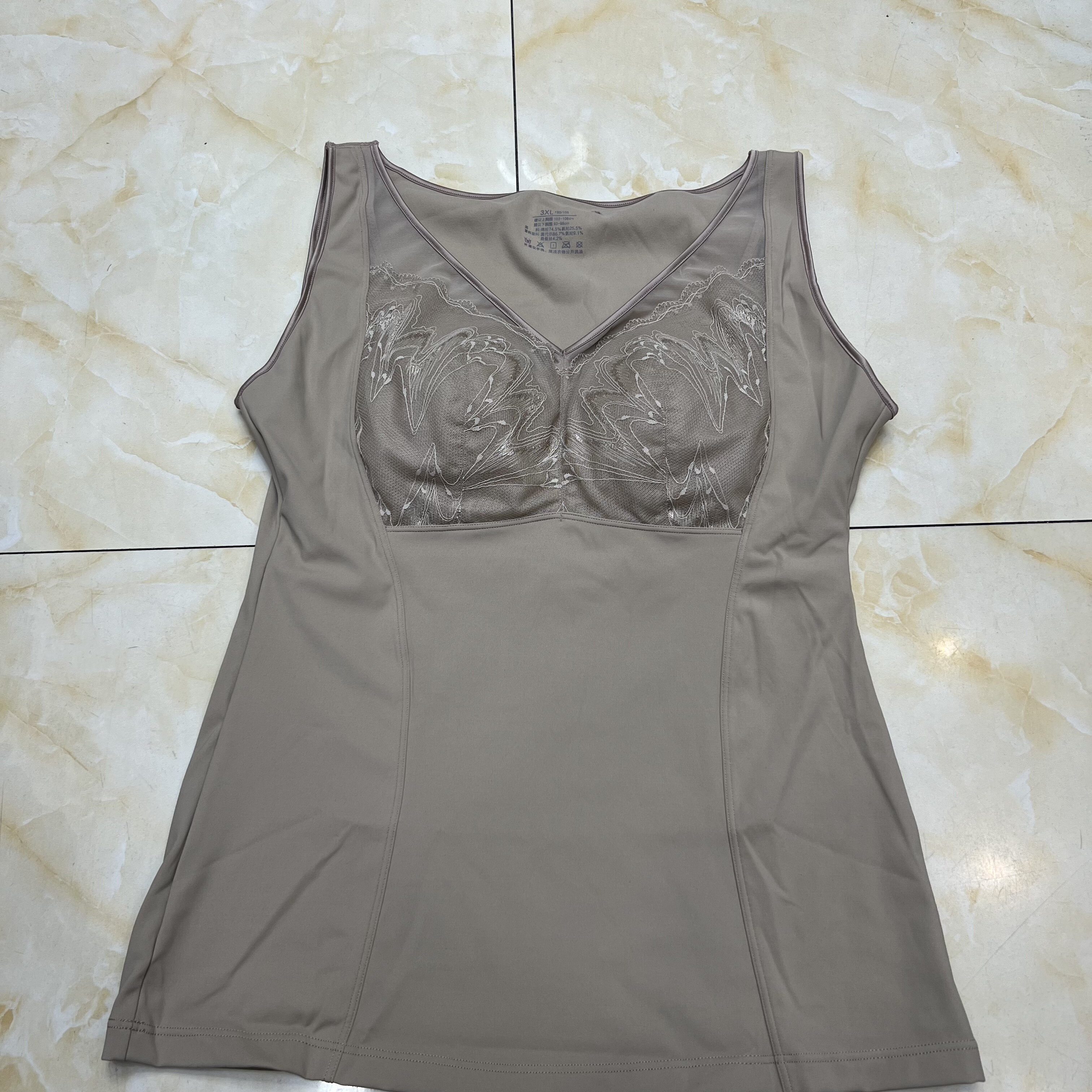 芳芳女装秋季打底背心女固定一体杯免穿文胸聚拢修身舒适蕾丝V领