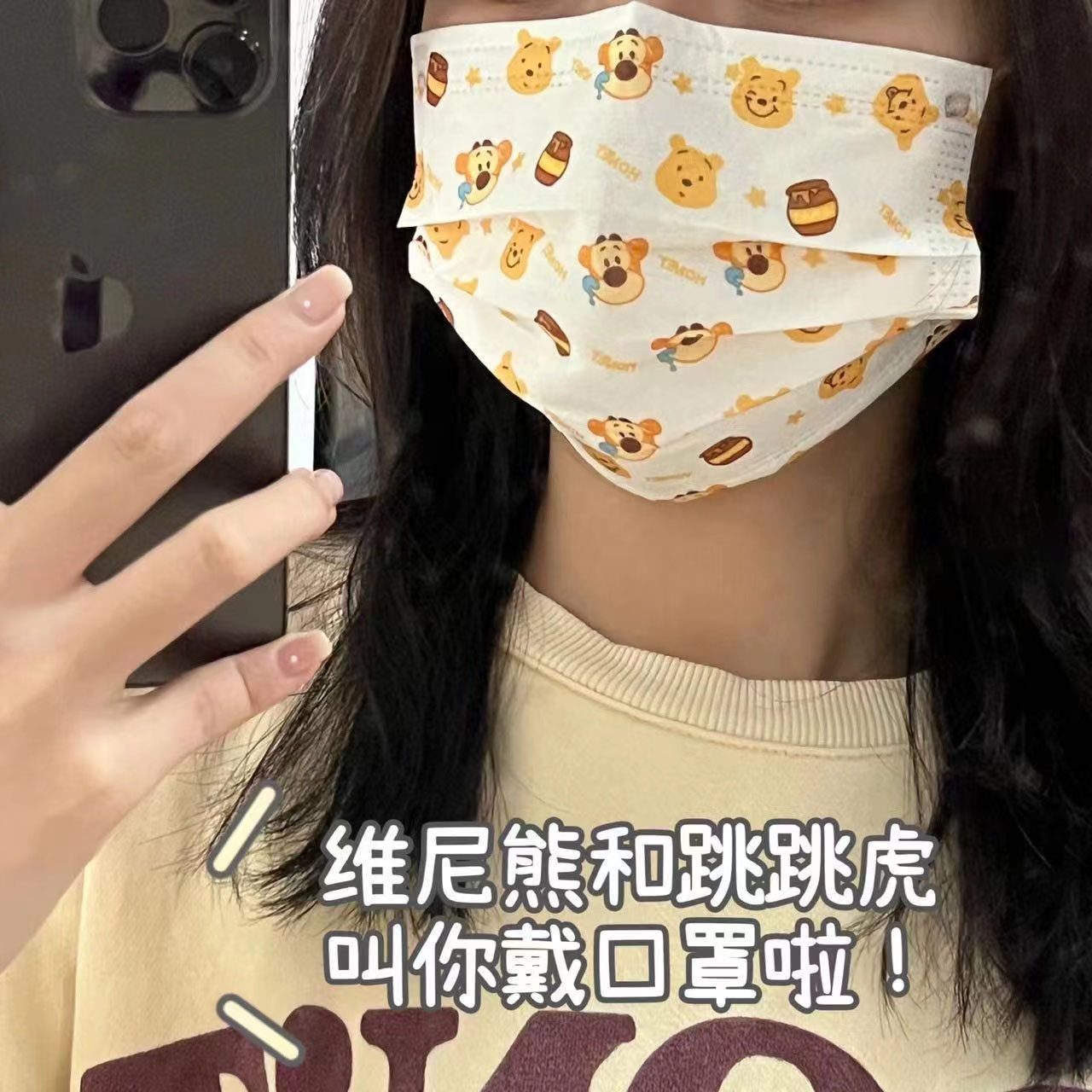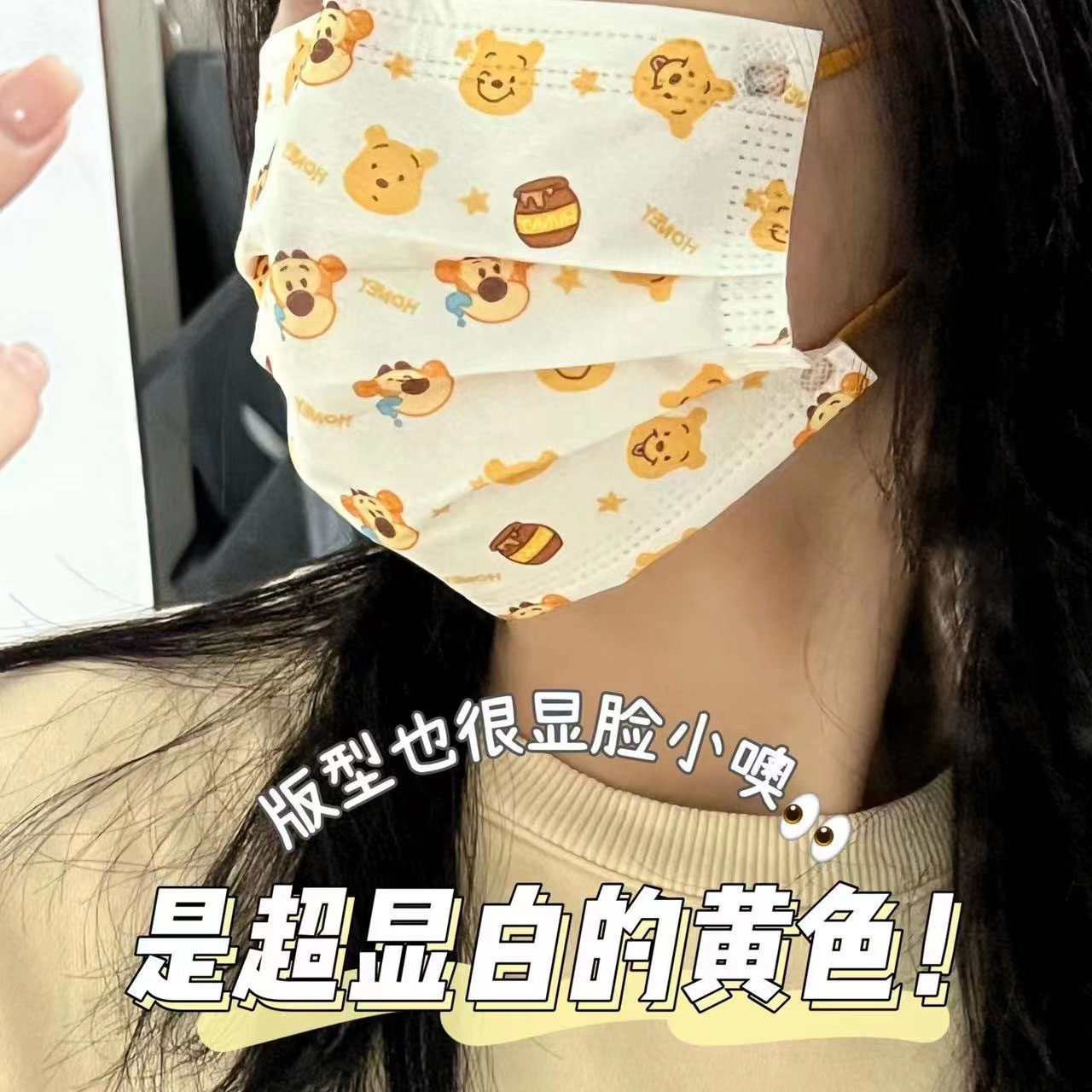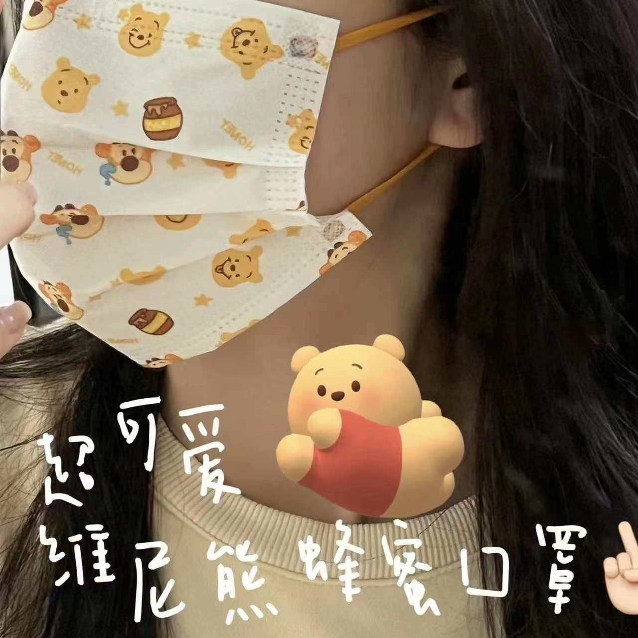 50片装小红书蜂蜜黄色维尼熊跳跳虎可爱卡通迪士尼一次性防护口罩