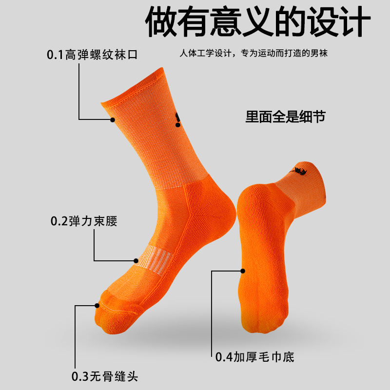 HELLO ZIMO袜子男薄秋季纯棉毛巾底中筒运动防臭吸汗篮球学生长袜