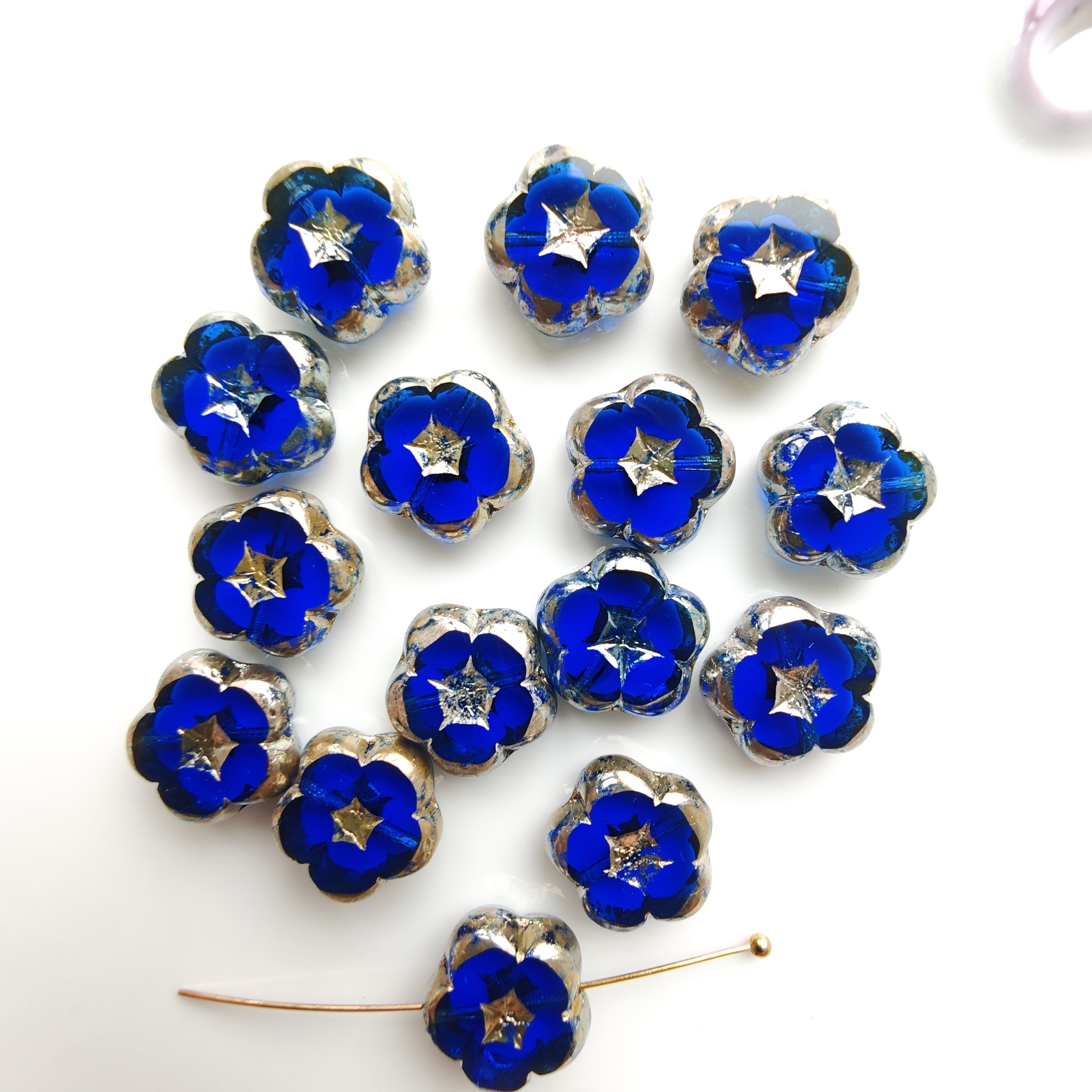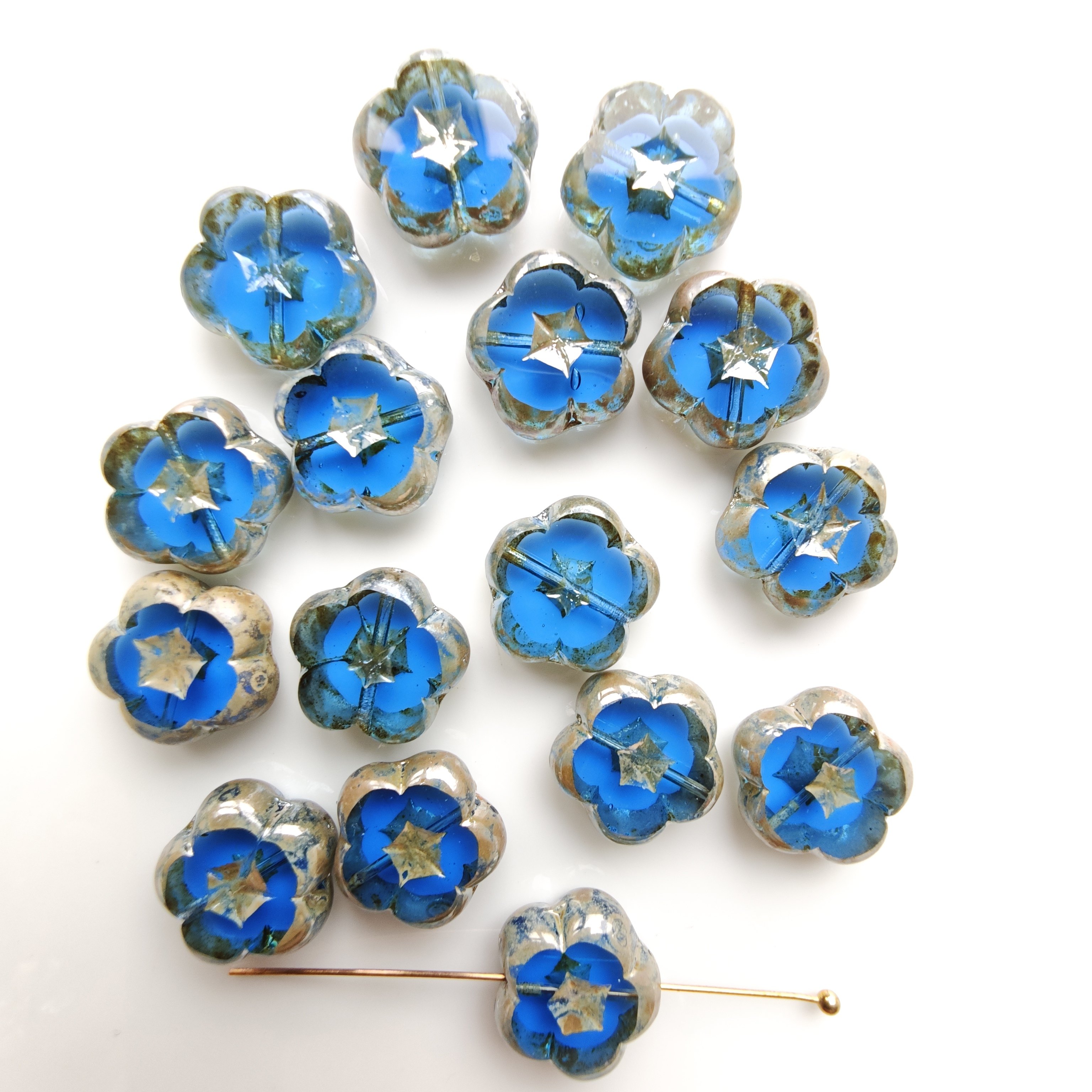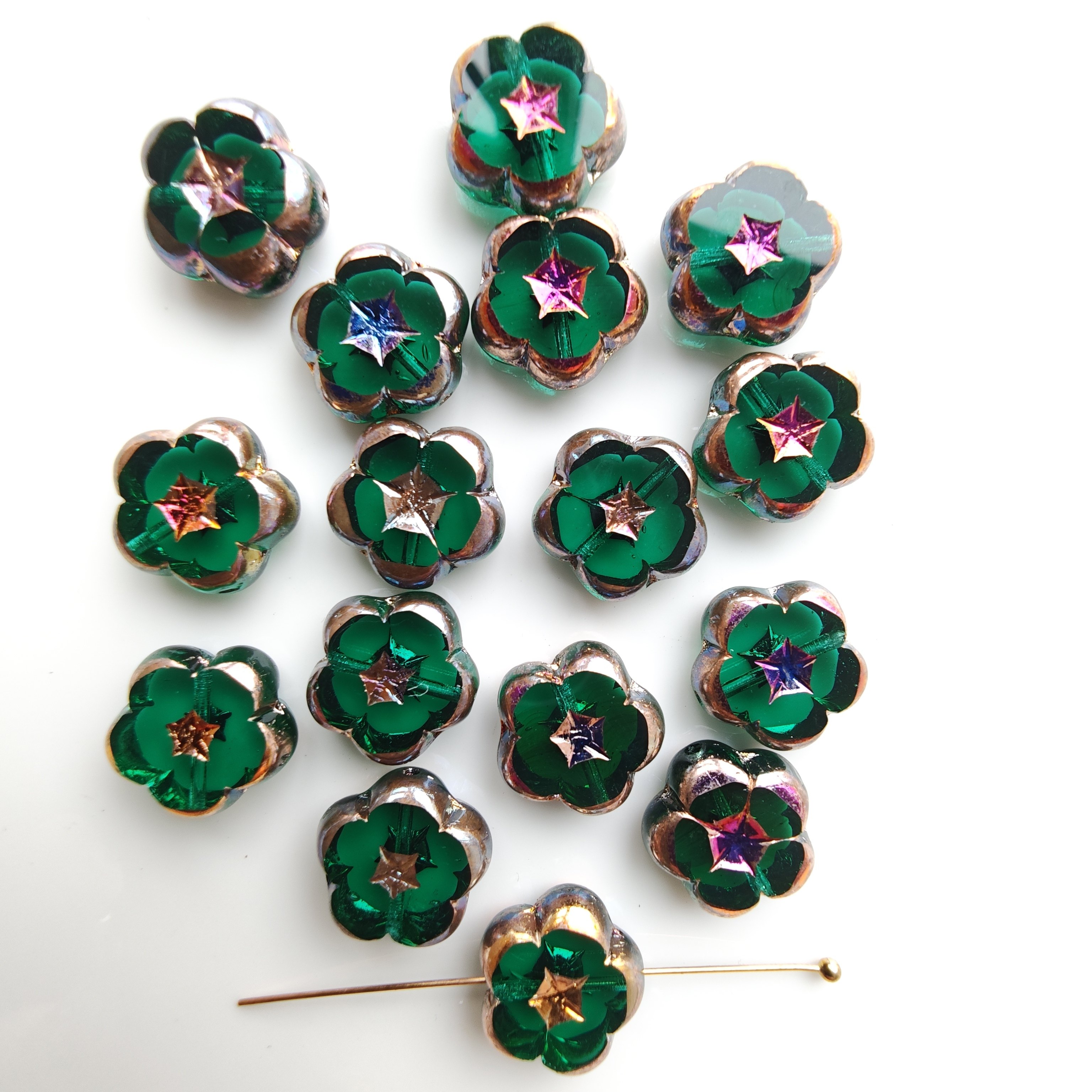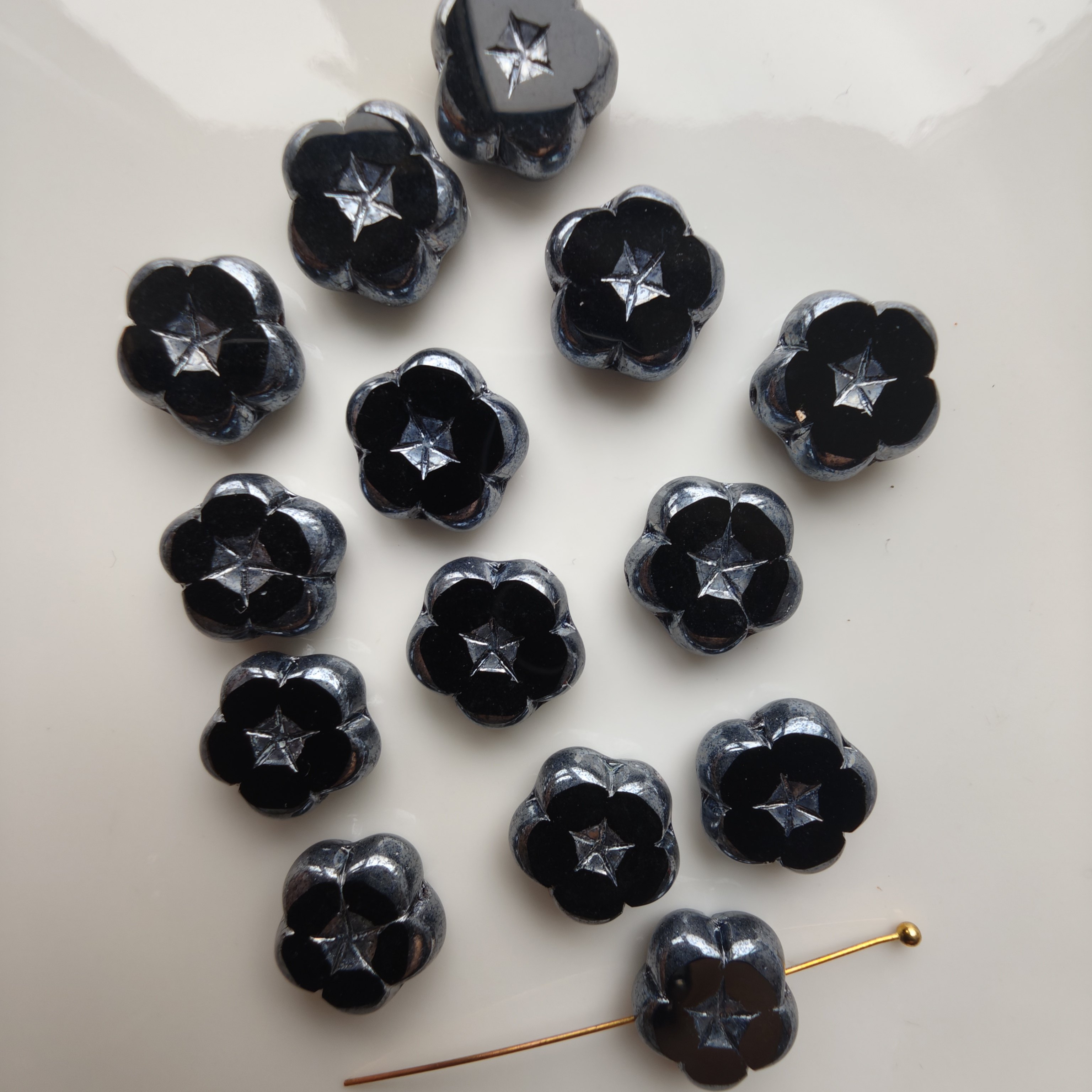 进口捷克琉璃珠14mm切面五瓣花山竹花手工串珠材料配件散珠