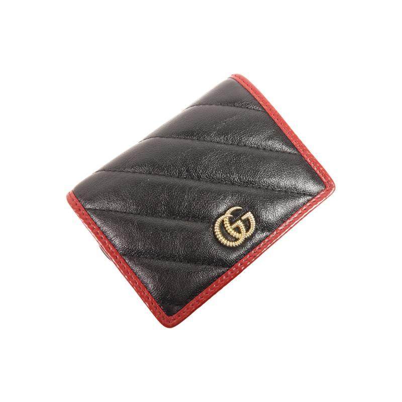 中古Gucci古驰女A级95新Marmont马蒙包牛皮短钱包黑色
