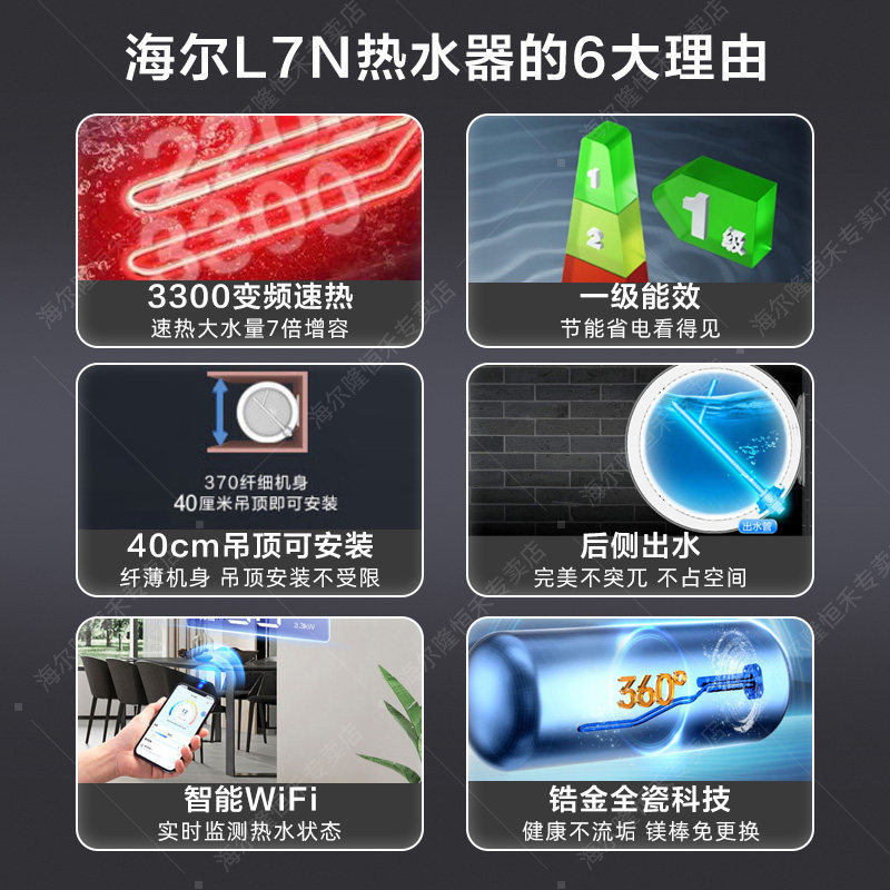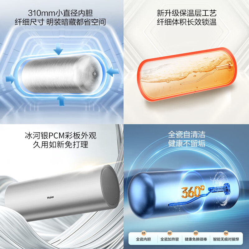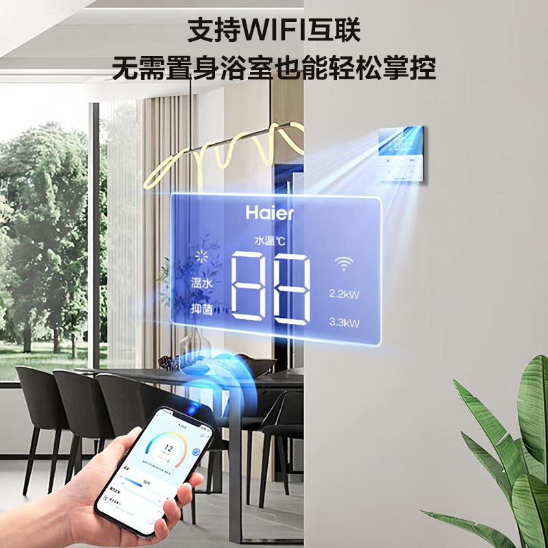 海尔储水式电热水器50升60升后侧出水全隐藏式家用速热吊顶线控式