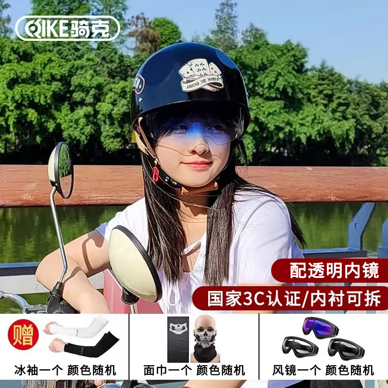 复古半盔男摩托车头盔夏季超轻3C个性电动车哈雷机车骑行瓢盔女