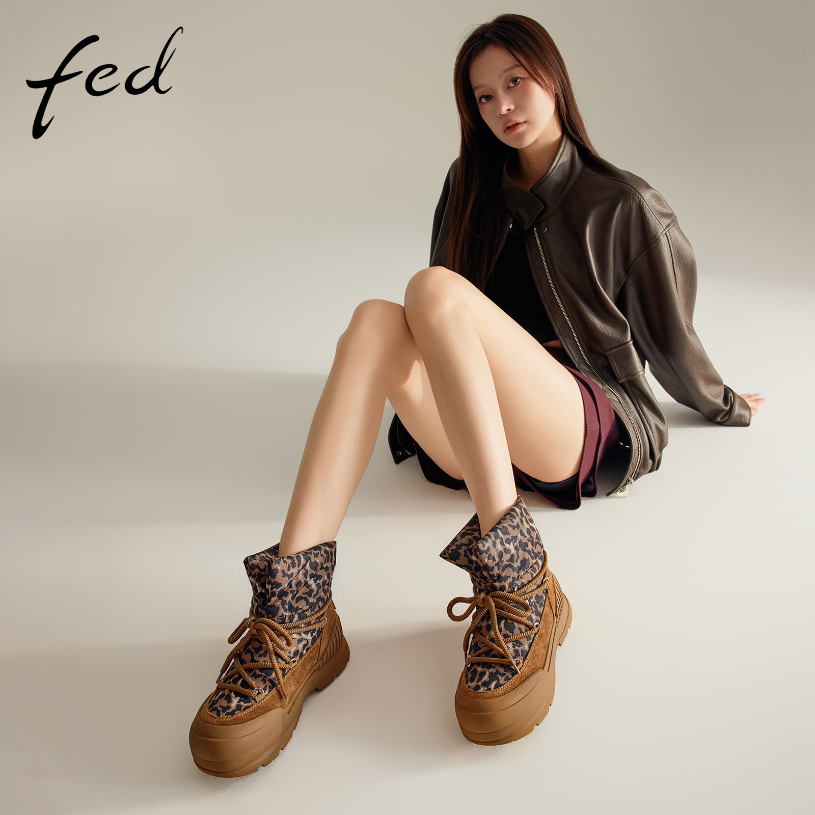 fed保暖羊毛秋冬女鞋耐寒耐磨厚底靴子女靴短靴户外棉靴雪地靴女