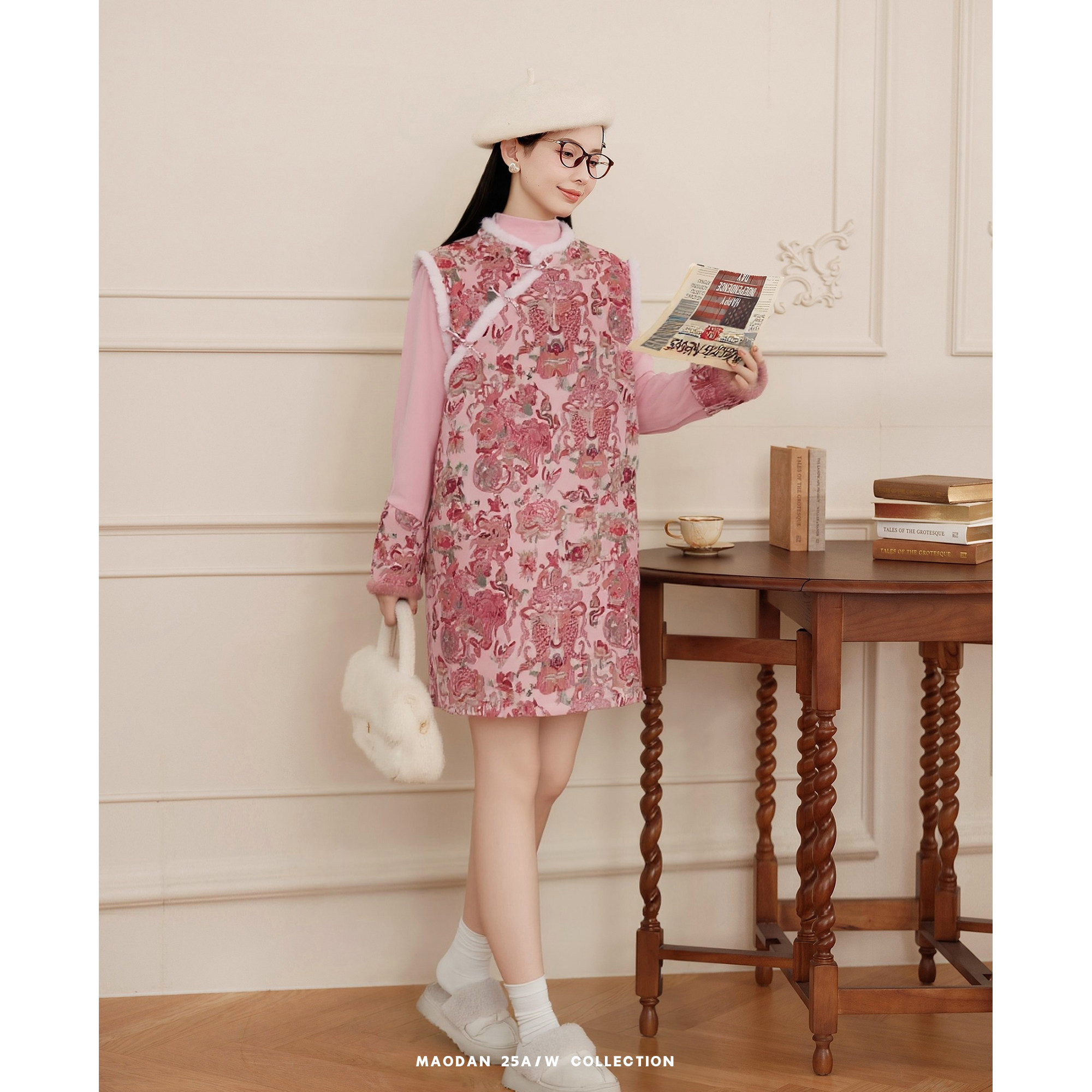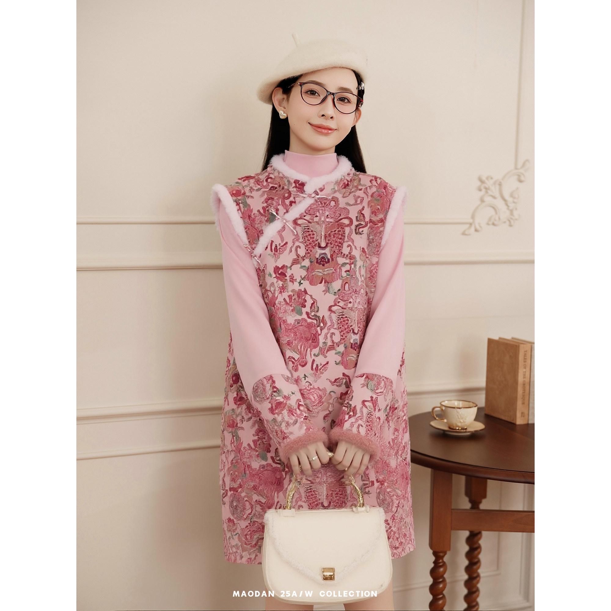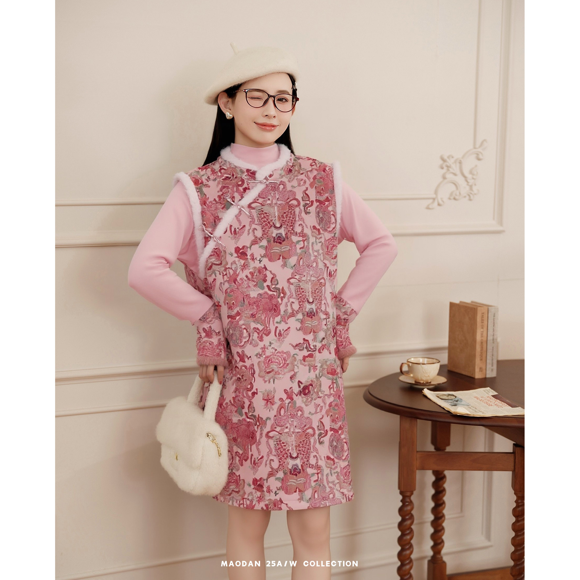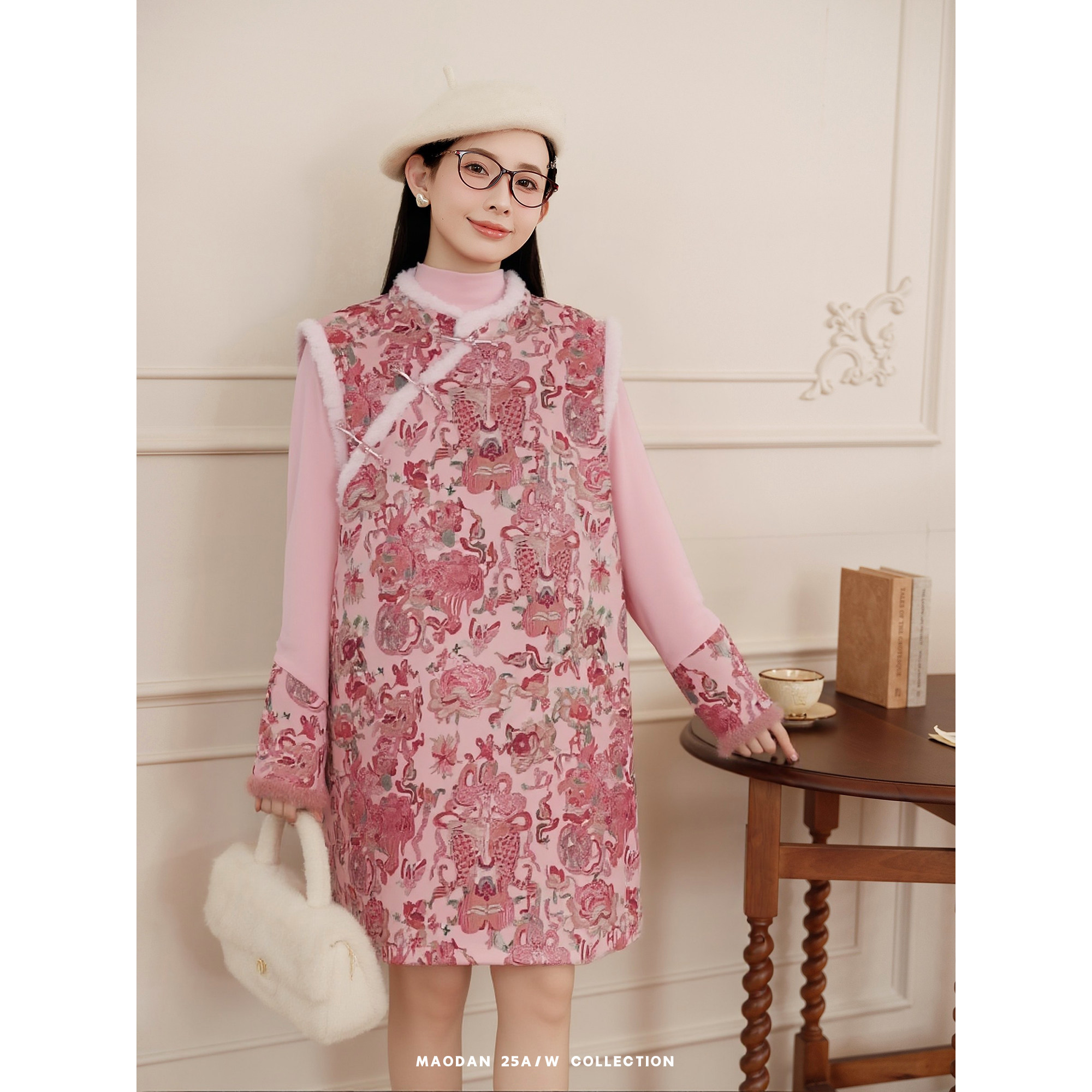 猫单【粉黛锦鲤】【棉】孕妇装新中式加绒加厚背心裙中国风两件套