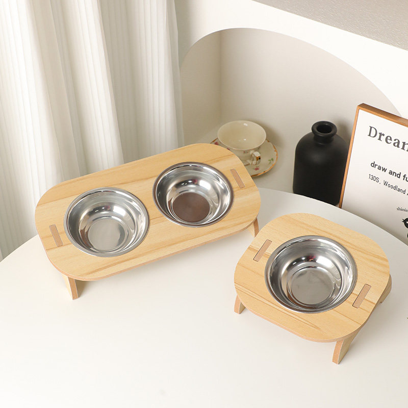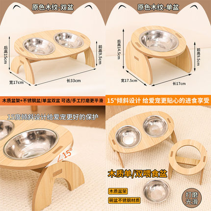 猫碗木架碗宠物碗猫咪碗狗狗碗食盆宠物斜口防打翻双碗喝水吃饭