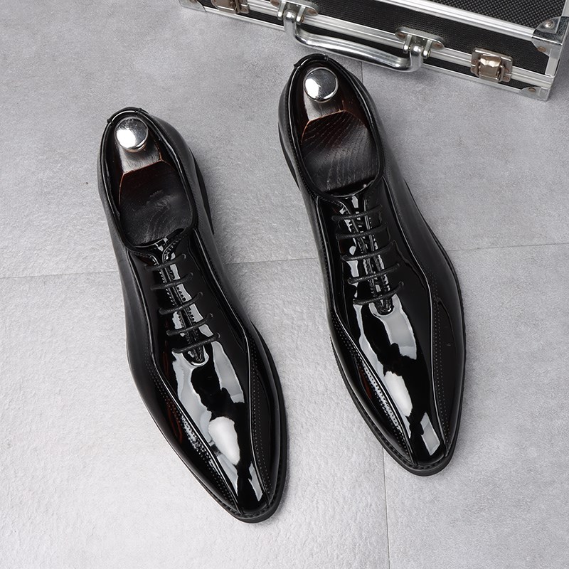 青年方头皮鞋男高级感英伦正装内增高男鞋亮皮百搭商务休闲婚礼鞋