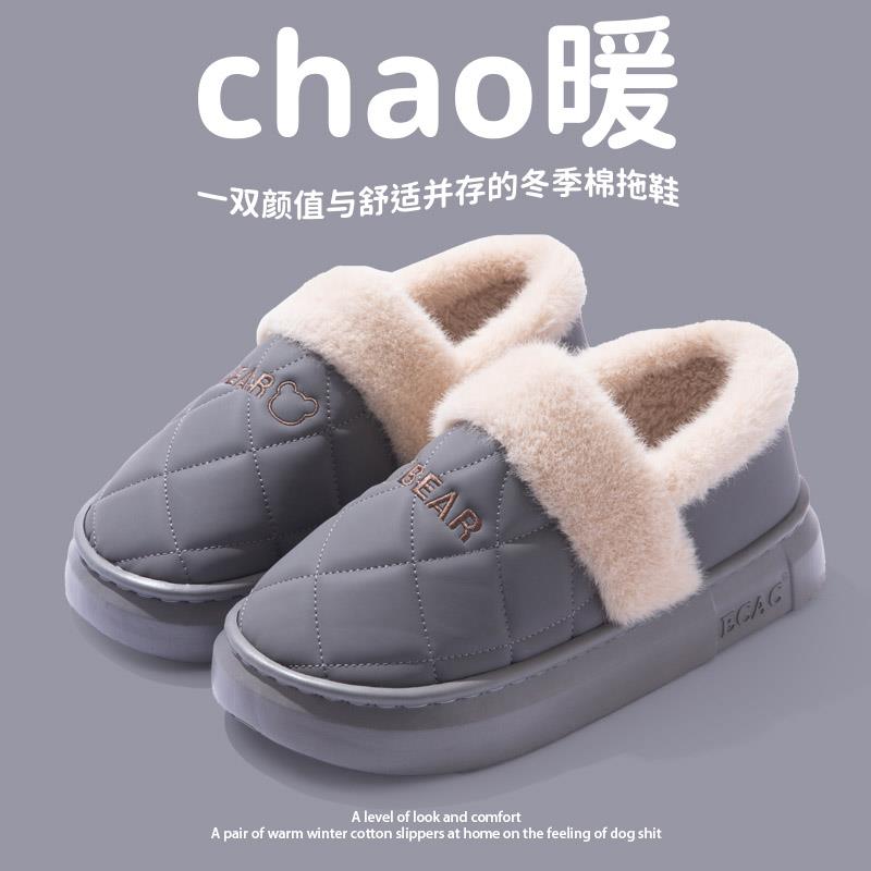 2025新款防水棉拖鞋男款秋冬季室内家居防滑厚底羽绒保暖包跟棉鞋