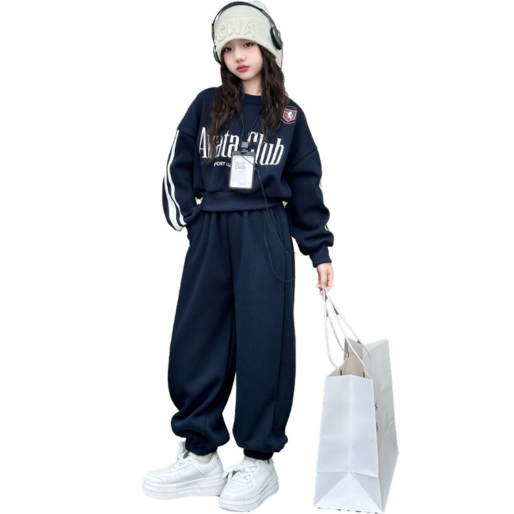 女童卫衣套装加绒加厚冬装休闲2025新款中大童洋气运动儿童两件套
