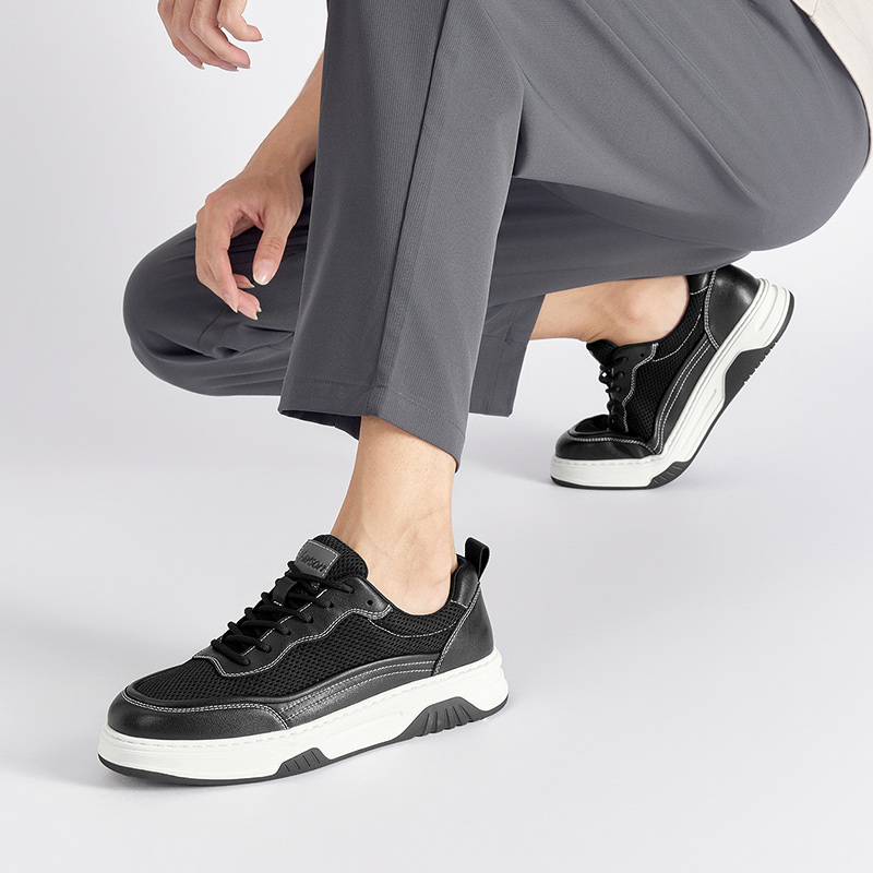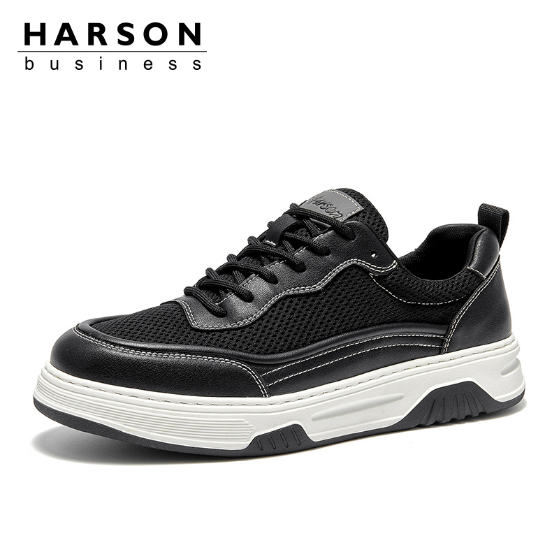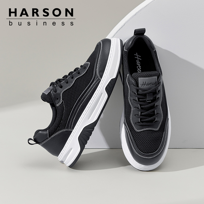 哈森男鞋秋季透气薄款网面运动休闲鞋男士厚底时尚板鞋男软底轻便