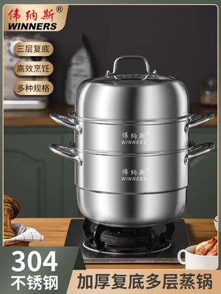 金星蒸锅304不锈钢加厚蒸锅3多层家用蒸锅大容量燃气电磁炉专用