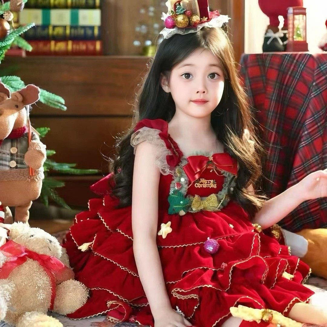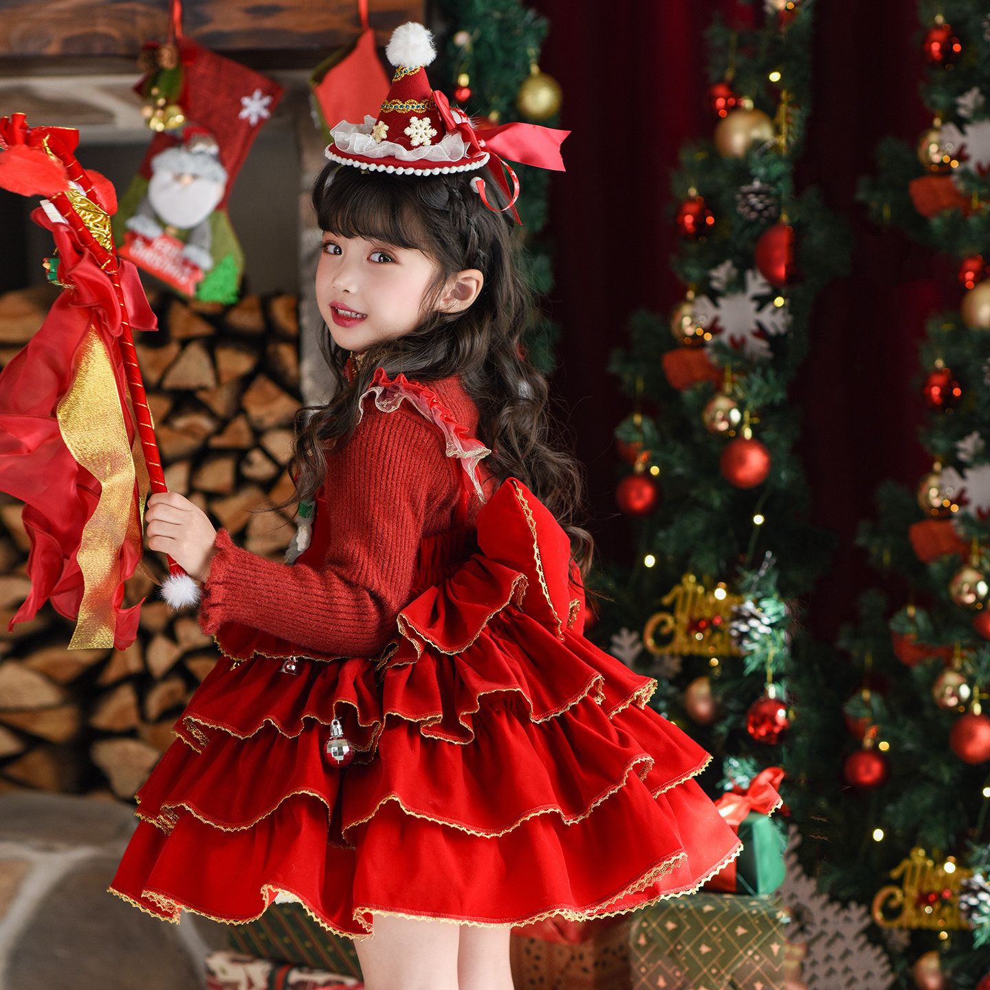 圣诞节服装儿童cos服女童秋冬洛丽塔连衣裙女宝公主裙礼服蓬蓬裙