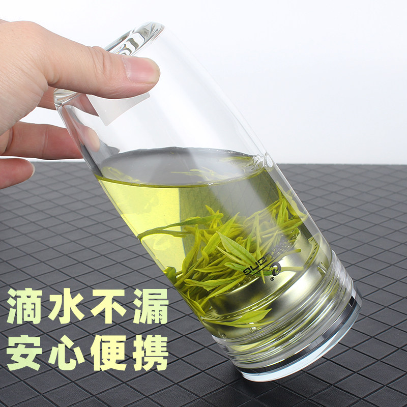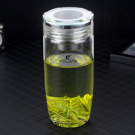 卧龙水杯单层玻璃杯男士女加厚大容量透明玻璃茶杯滤网鹅蛋杯家用
