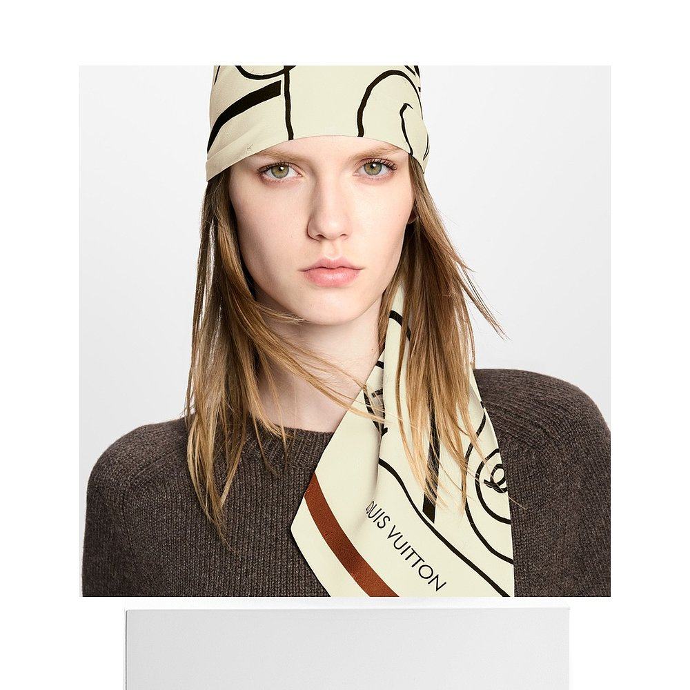 1h可退 欧洲直邮LV路易威登 女士白色丝绸艺术图案丝巾围巾