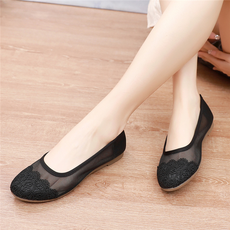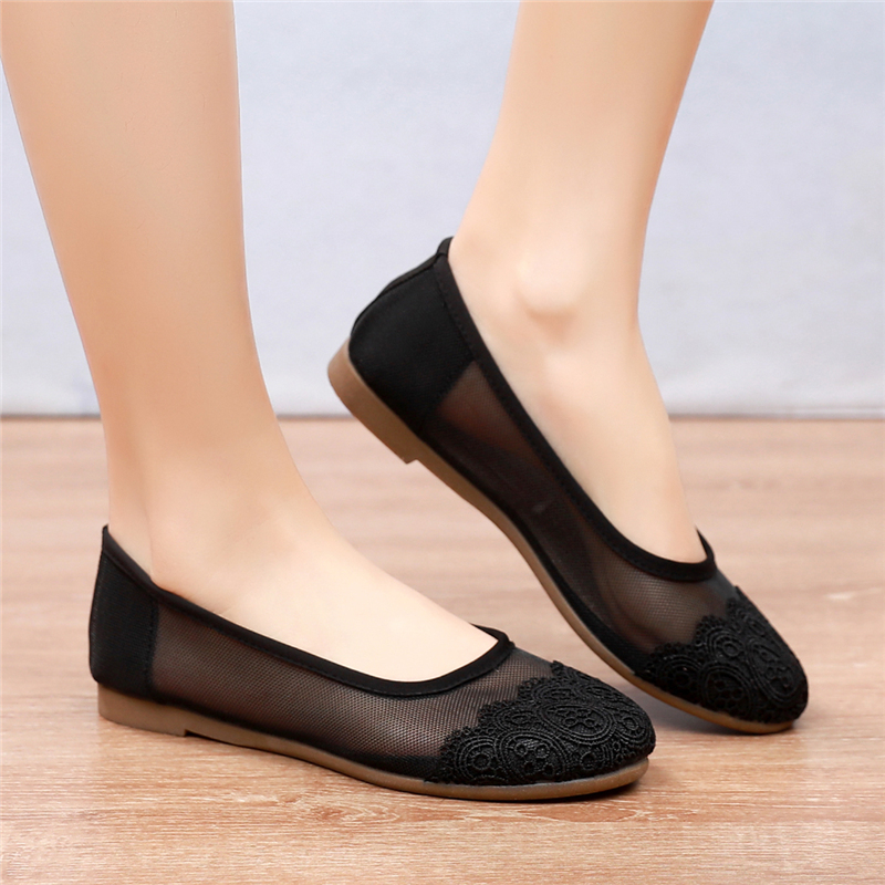 夏季一脚蹬平底透气网面女鞋复古妈妈鞋网纱透气豆豆鞋老北京布鞋