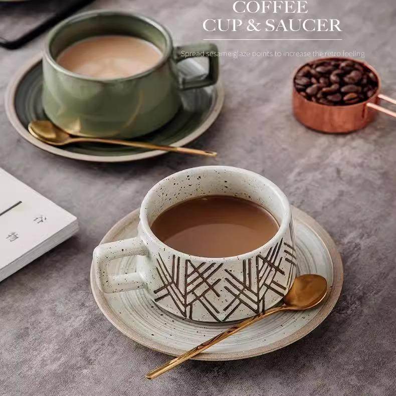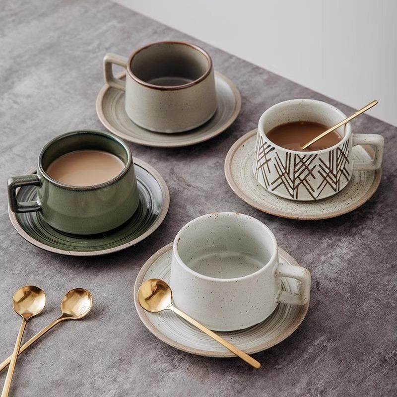 日式复古咖啡杯碟套装创意粗陶精致下午茶杯陶瓷拿铁咖啡杯情侣杯
