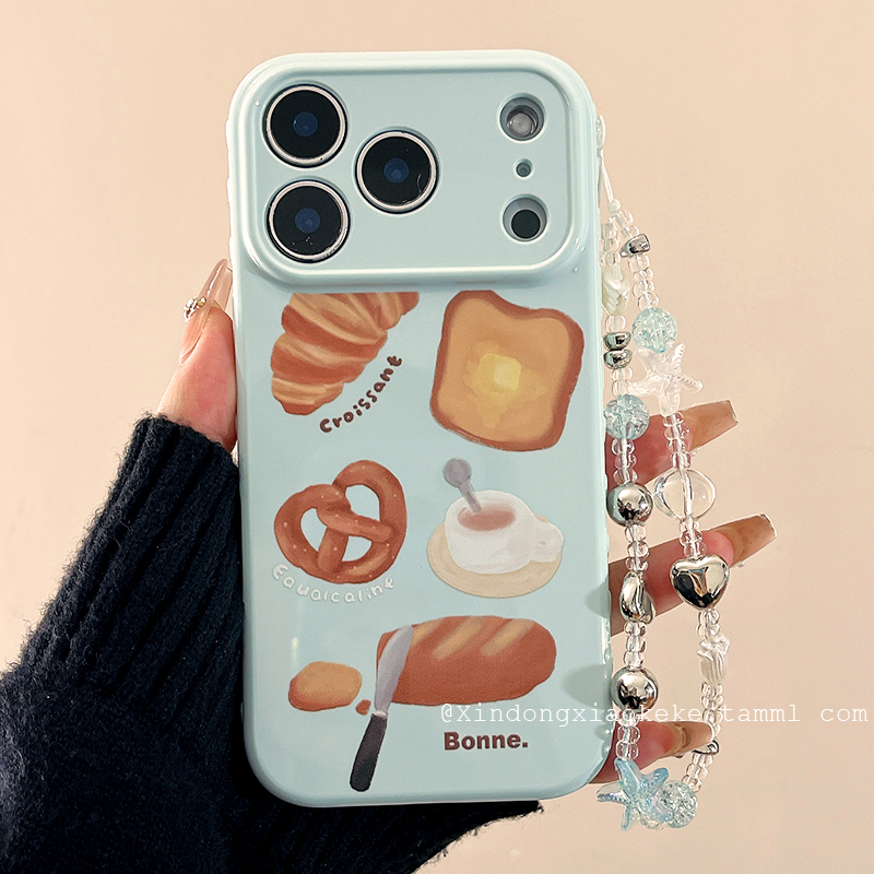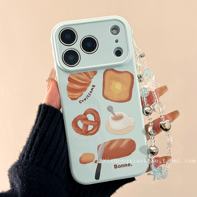 韩系插画扭结吐司面包适用苹果iPhone17ProMax手机壳16pro新款14带链条13小众女14promax硅胶17pro创意12全包