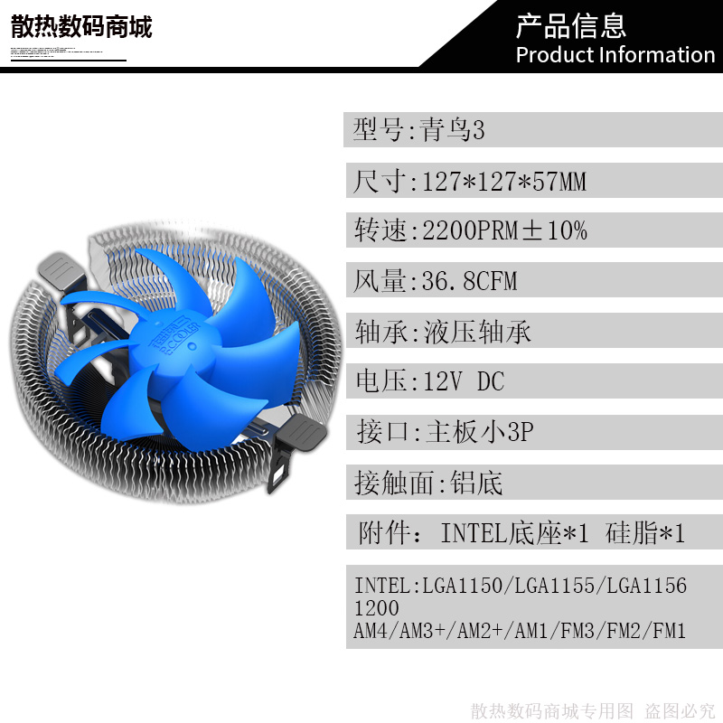 九州风神 超频三 青鸟3 冰凌 红海MINI cpu散热器风扇塔式静音