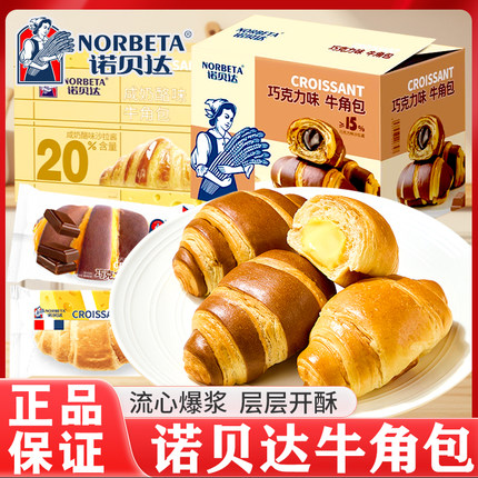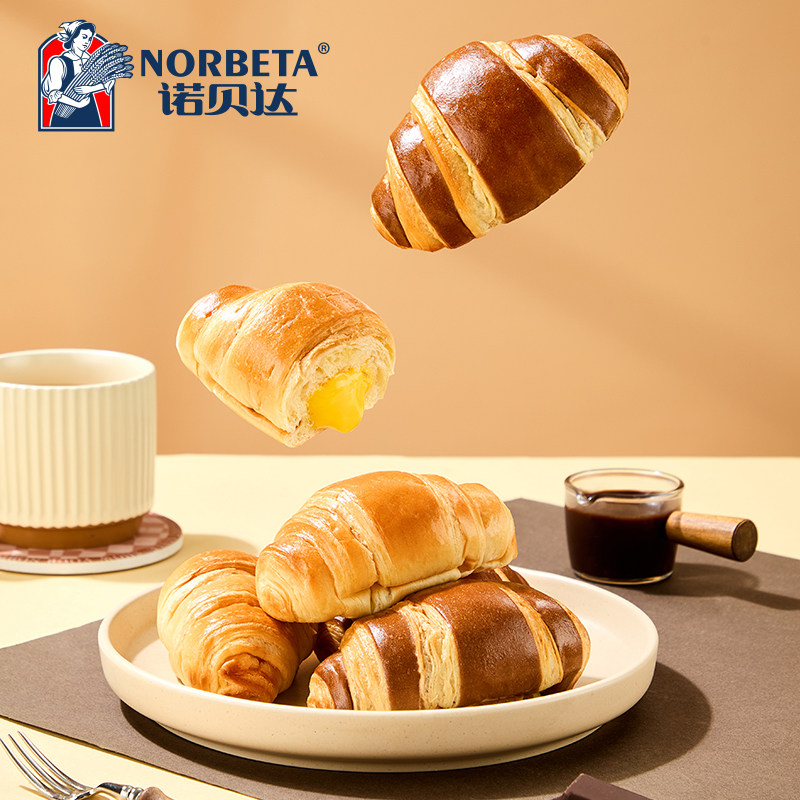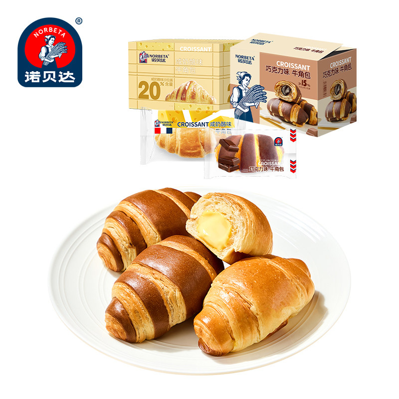 诺贝达爆浆夹心牛角包巧克力奶酪味可颂面包营养早餐代餐休闲零食