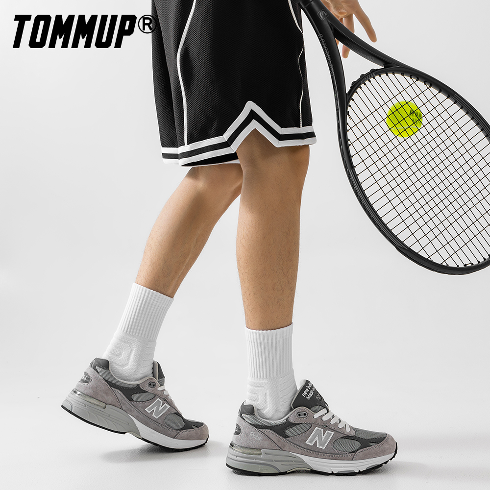 TOMMUP男士袜子夏季速干毛巾底薄款运动中筒袜篮球长袜白色男生潮