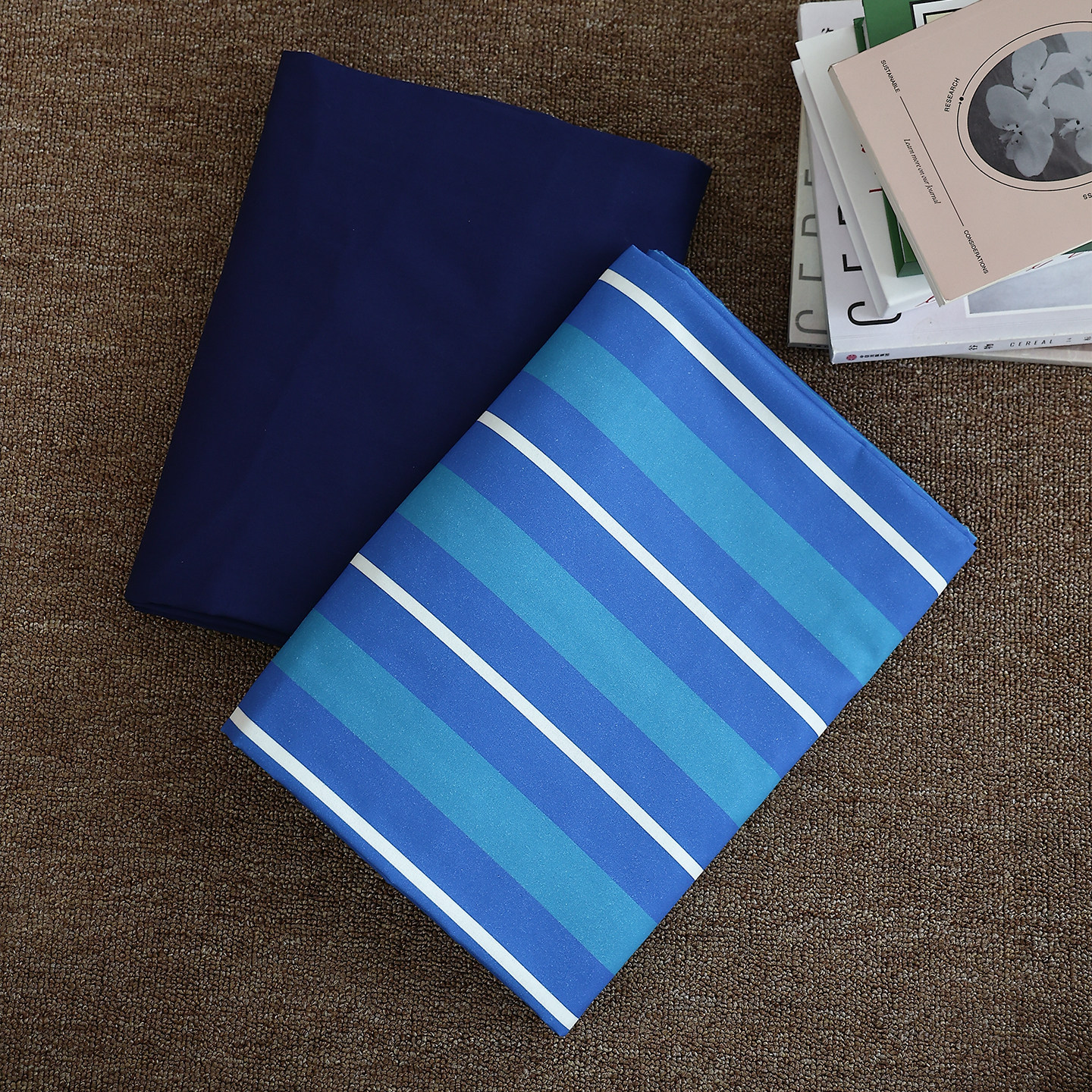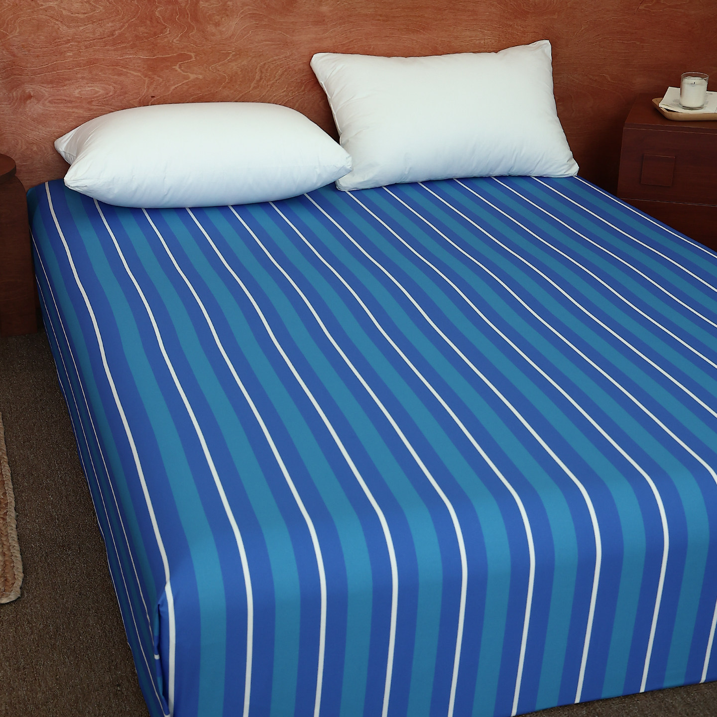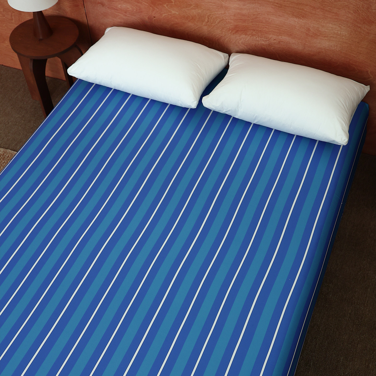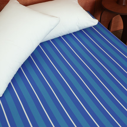 海獭与夜晚 原创北欧风100%全棉床单床笠牛仔蓝条纹双人床1.8m/2m