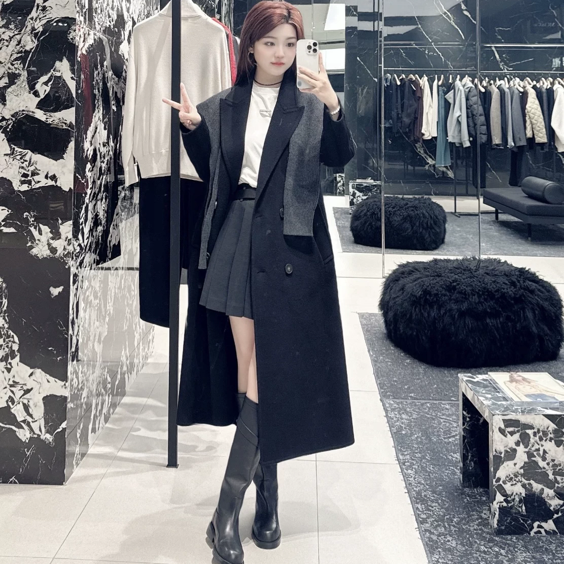 【秦岚同款+系列】正品大衣针织披肩2025冬新品绵羊毛MBE4OVC006