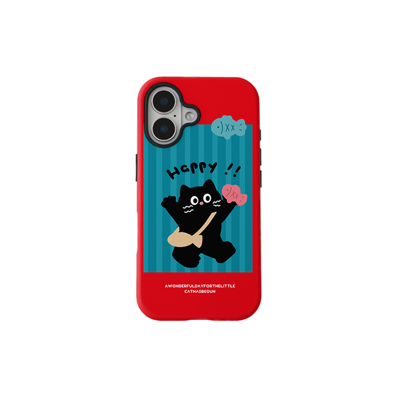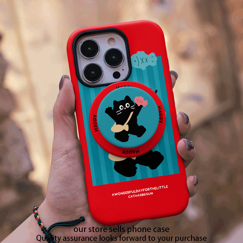壳壳大世界开心小黑猫适用苹果手机壳16promax磁吸菲林二合一iPhone15/14/13磨砂光面手感保护套硬壳11