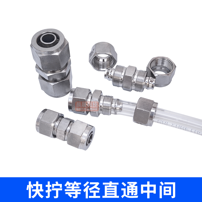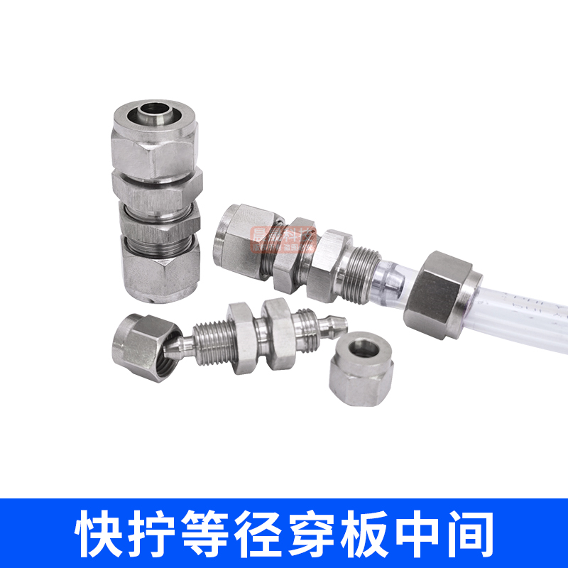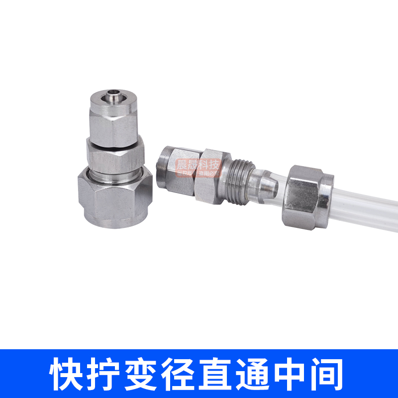 304不锈钢双头快拧直通变径中间锁母四氟软管PU气管尼龙快速接头