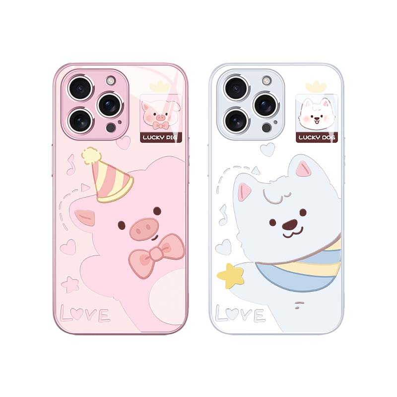 适用于苹果16promax手机壳iphone13可爱小猪14狗狗15情侣pro卡通12mini简约11玻璃x防摔xr超好看7/8/6plus套