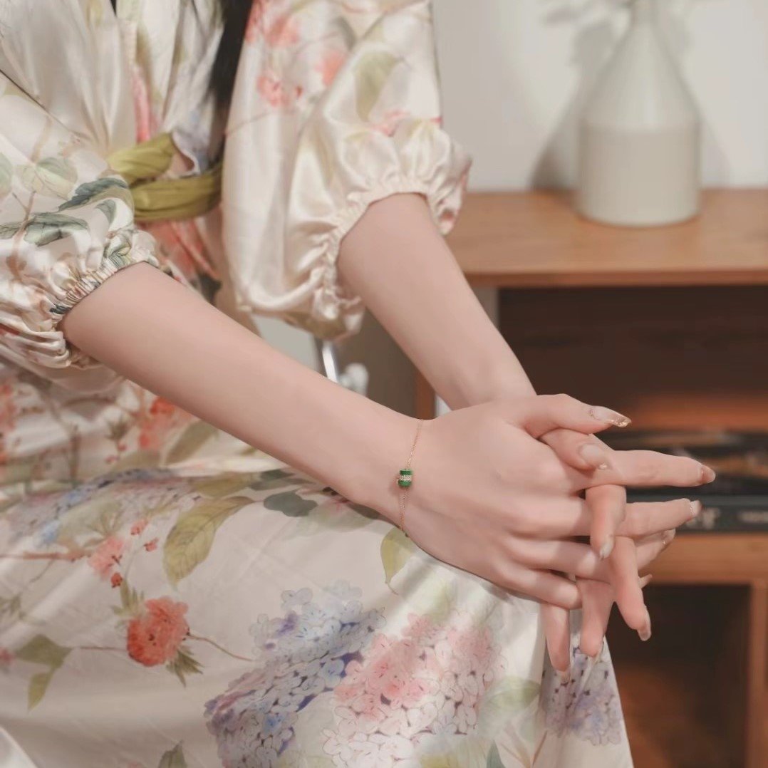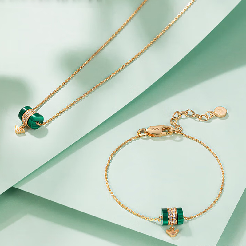 阿玛尼手链女 孔雀石转运珠手链925银玫瑰金色手链日礼物送女友