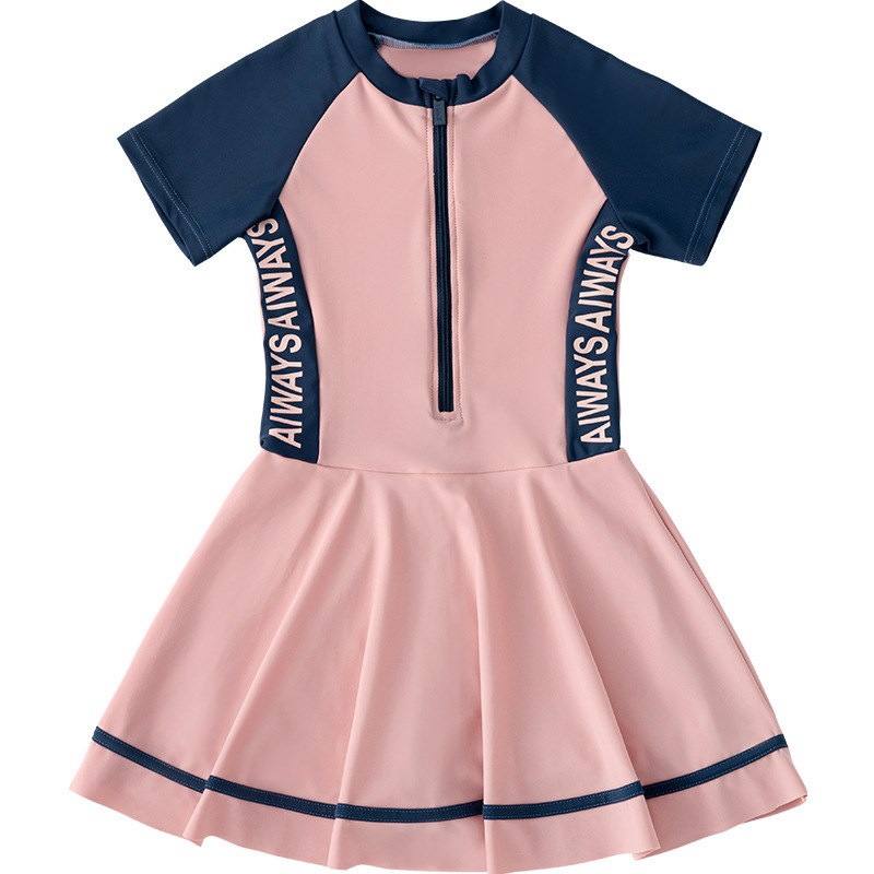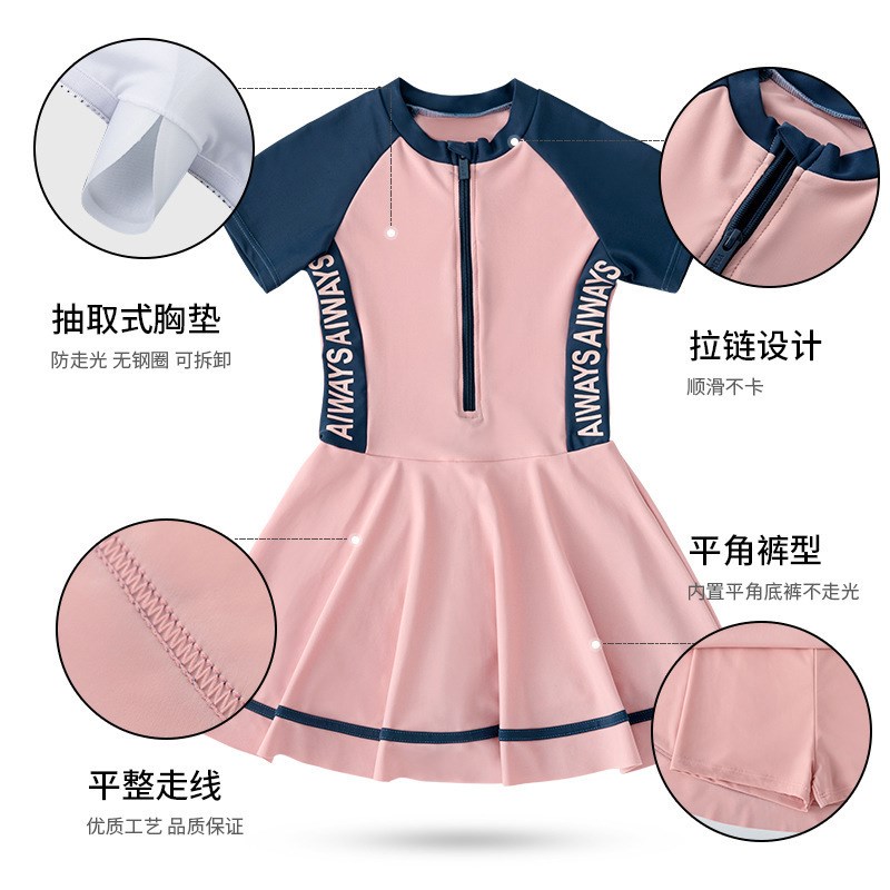 儿童泳衣女童中大童连体短袖游泳衣2021新款可爱女孩防晒速干泳装