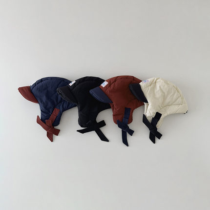 雷锋帽冬季充棉保暖护耳帽ins韩国儿童男童女童洋气布标御寒帽子