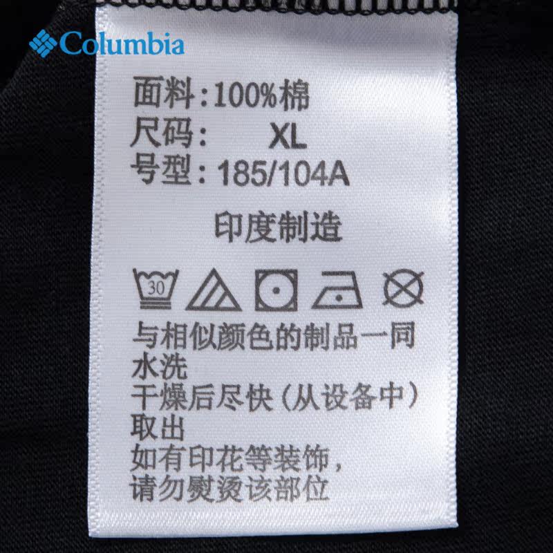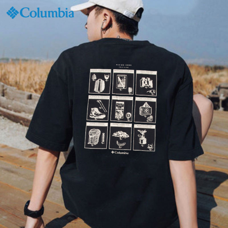 哥伦比亚官方短袖男冬季新款透气休闲圆领T恤衫黑色户外运动上衣