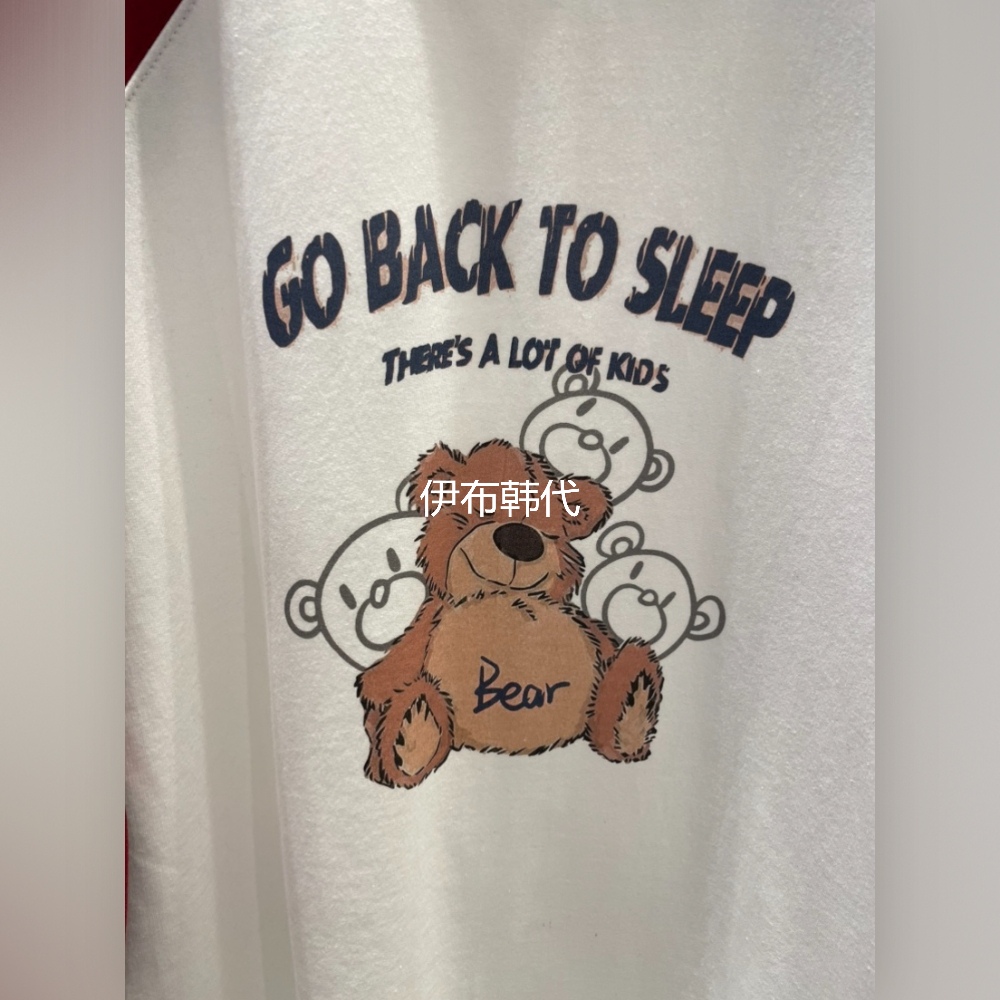 圆领插肩字母小熊长袖T恤女