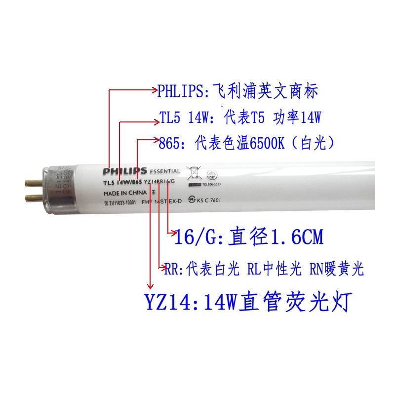 飞利浦t5灯管28W三基色 TL5 14W/865 YZ14RR16/G 21W荧光灯管28W