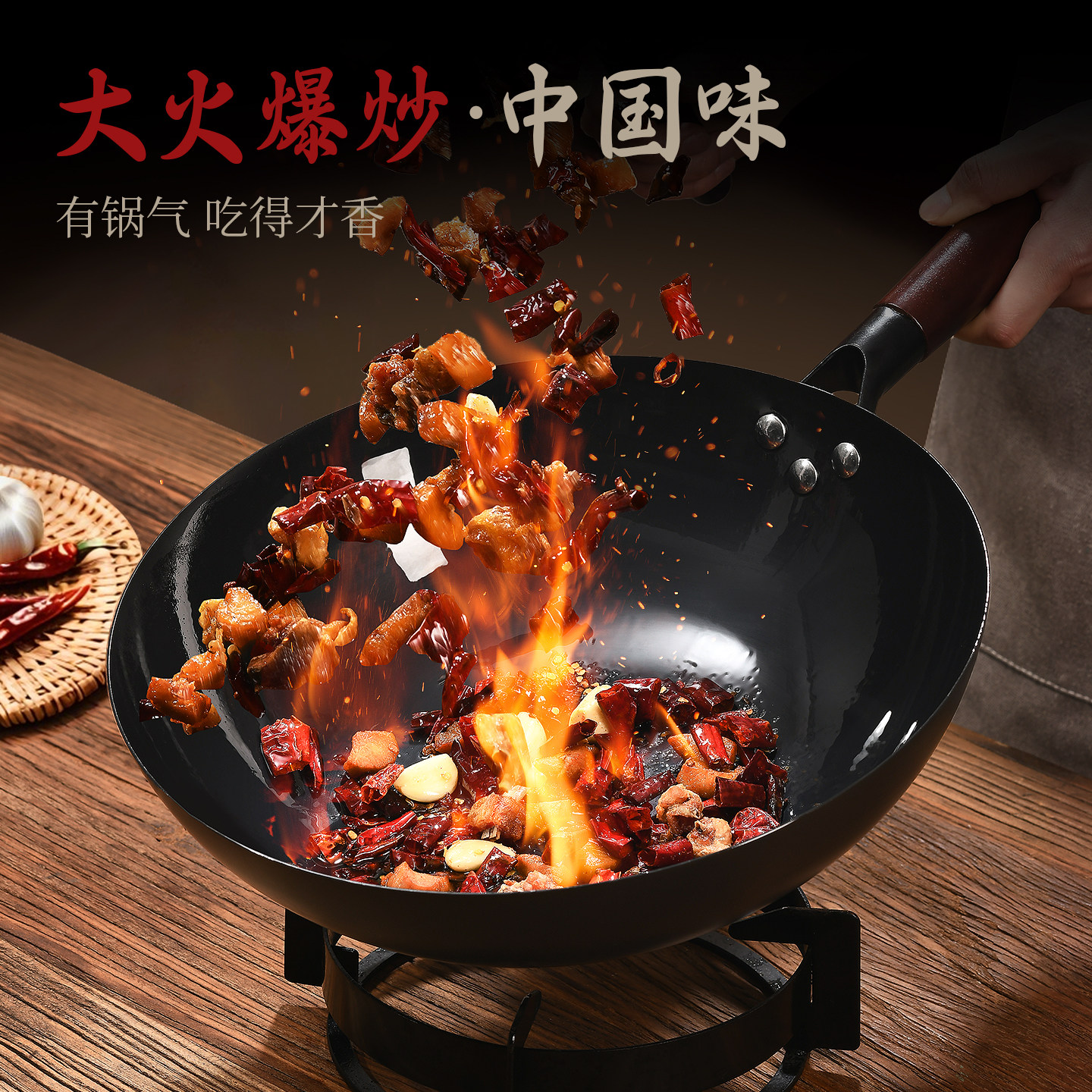 荣事达铁锅家用老式传统炒菜锅已开锅无涂层不粘锅燃气灶适用