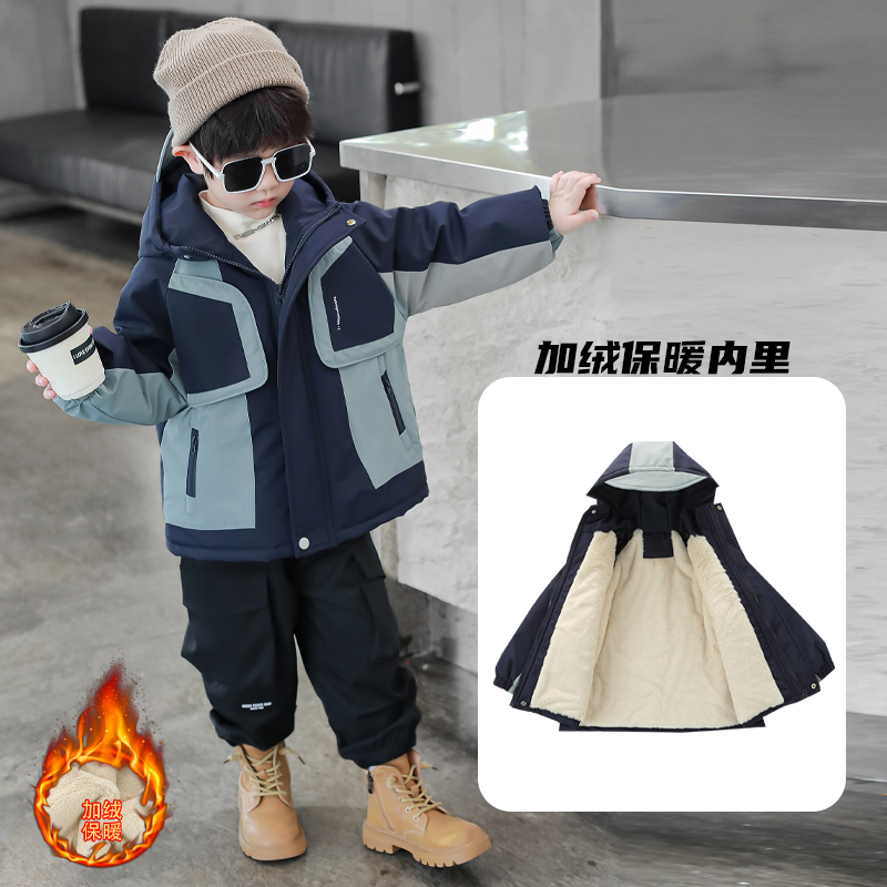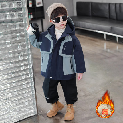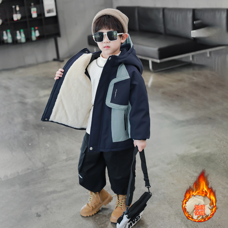 男童秋冬装派克服加绒加厚外套2025新款儿童轻薄棉袄男孩冬季棉衣