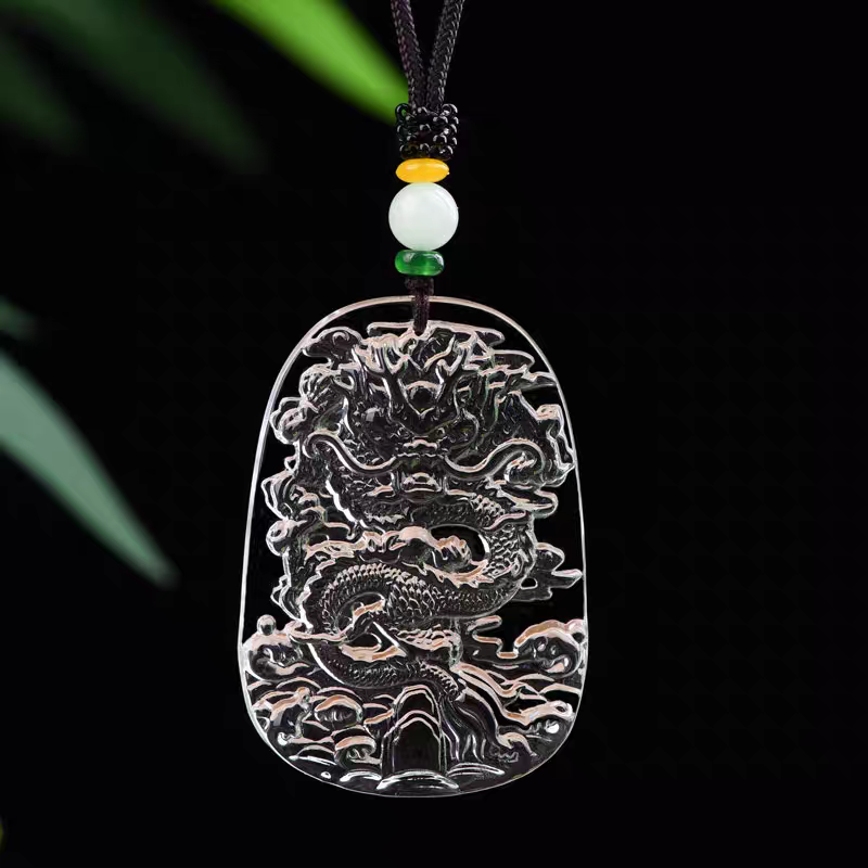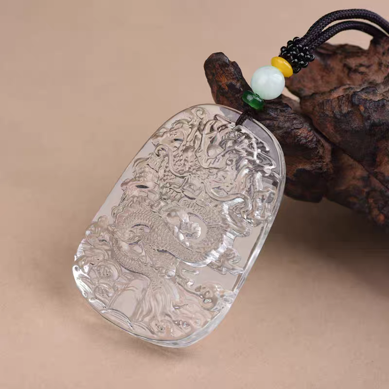 天然白水晶雕刻龙牌十二生肖龙吊坠项链挂件属龙男女款潮流毛衣链