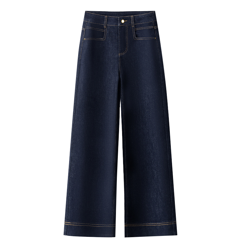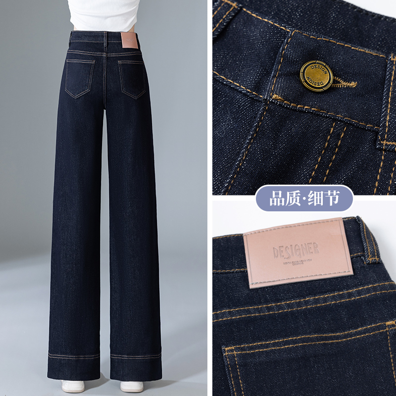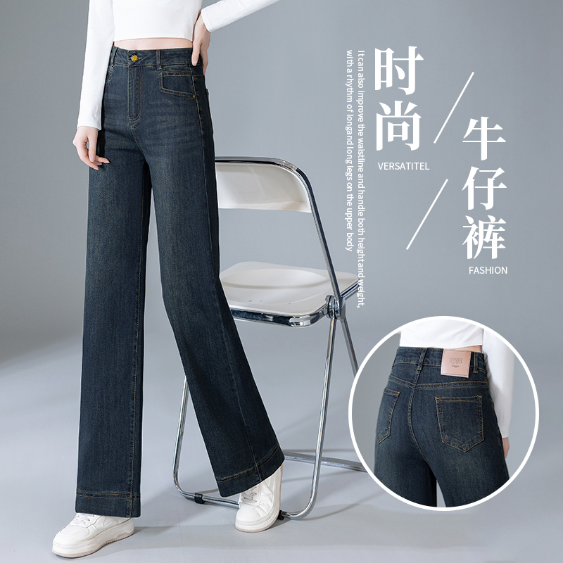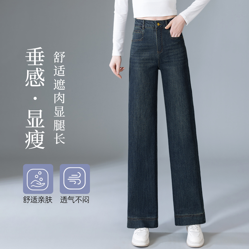 冷茶色复古窄版阔腿牛仔裤女秋2025新款高腰小个子弹力百搭直筒裤