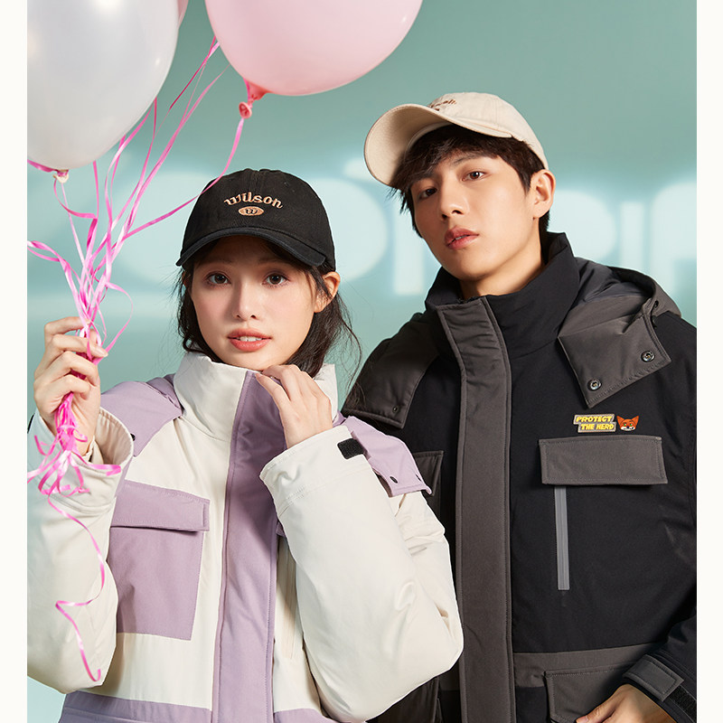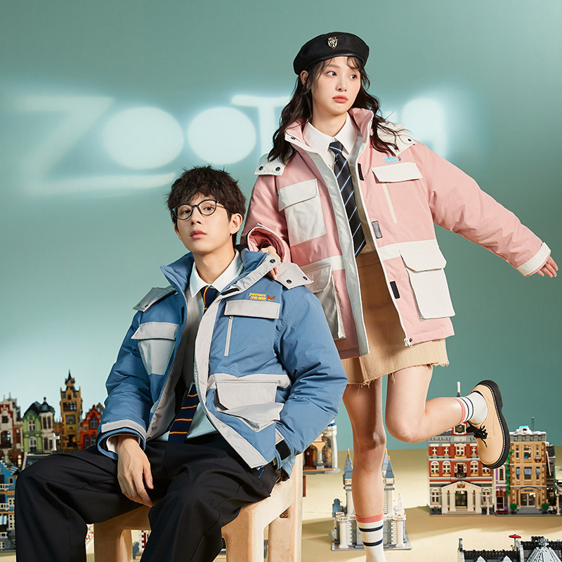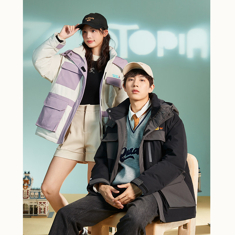 唐狮羽绒服冬装新款情侣短款连帽撞色蒙面工装羽绒服联名款
